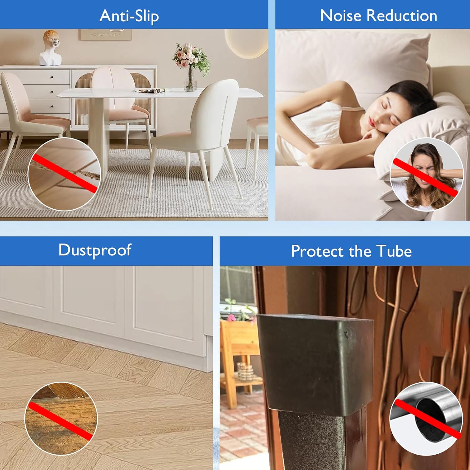 - Wide Applications: Suitable for various size furniture feet, our chair feet caps can be used on kitchen chairs, tables, dining room chairs, sofas, couches, bar stools, beds, dressers, patio chairs, metal bistro chairs, desk chairs, any square opening; They provide a neat and safe finish to tube ends