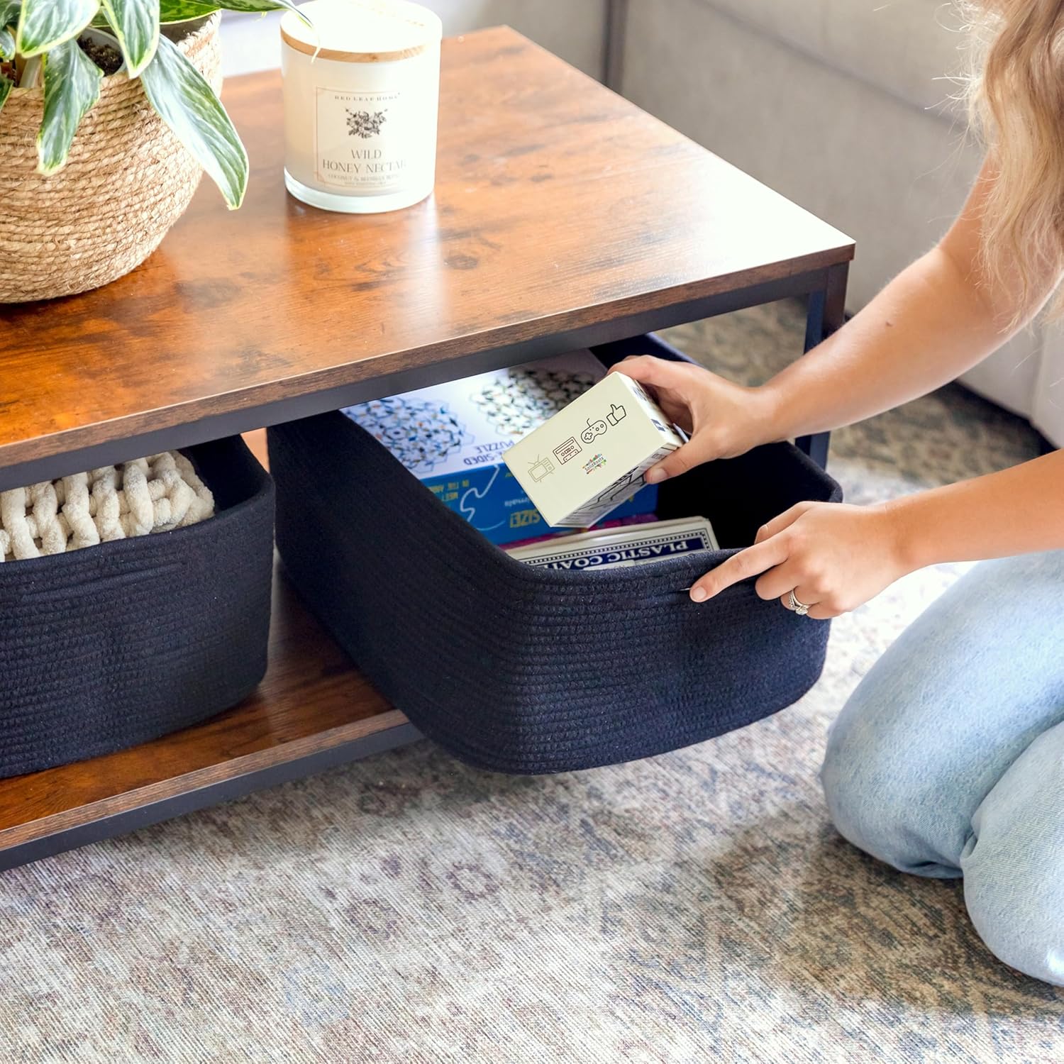 NaturalCozy Storage Baskets 16.8”x13”x7.6” Cotton Rope Woven Baskets for Organizing 3-Pack | Toy Storage Bins | Basket for Shelves, Laundry, Blanket, Clothes, Closet, Kitchen, Bathroom, Gifts