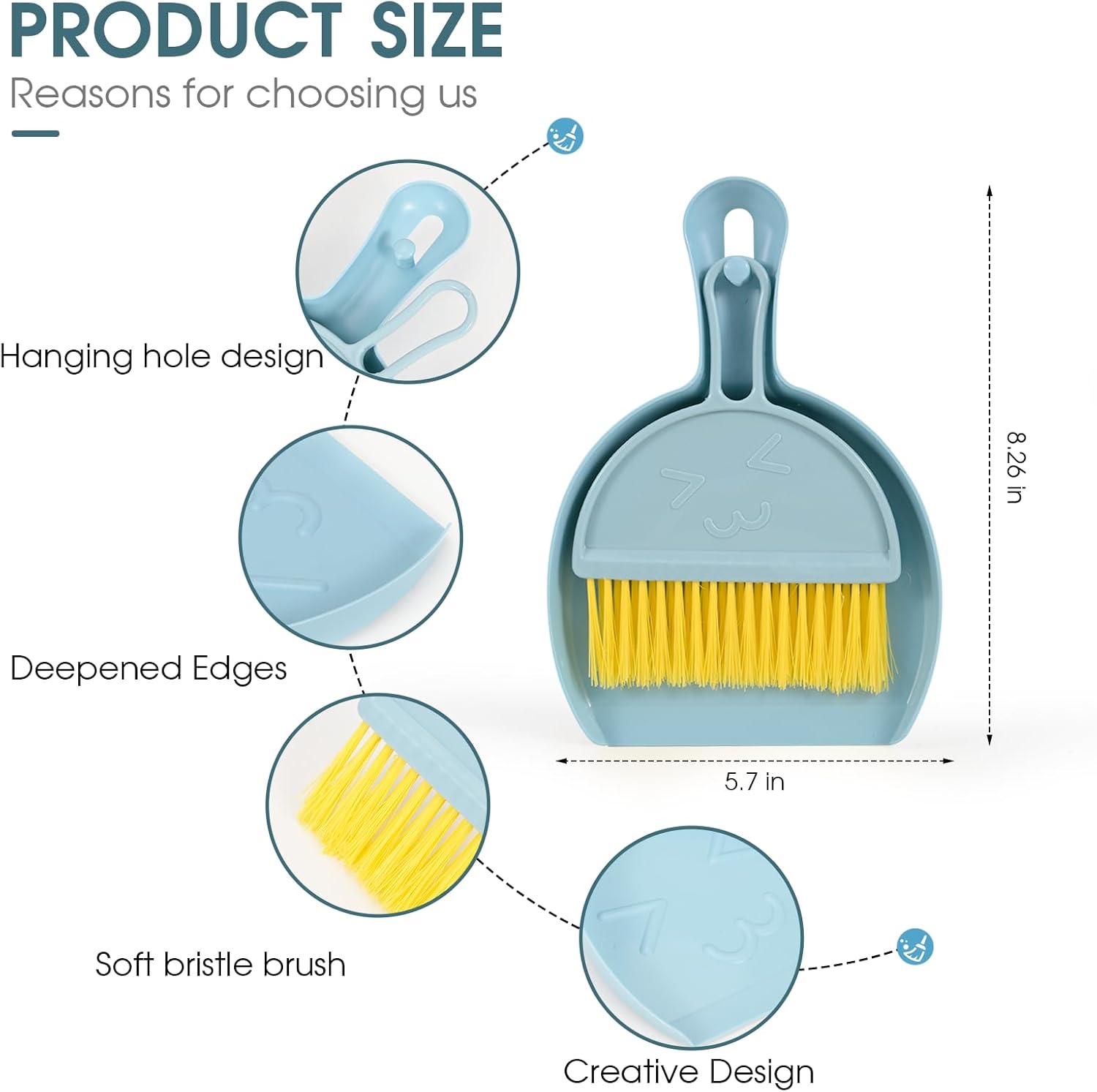 Small Broom and Dustpan Set,mini Compact Portable, for Home, Sofas, Kitchen countertops, Storage Shelves, Office desks, bathrooms, and pet Areas (Blue)