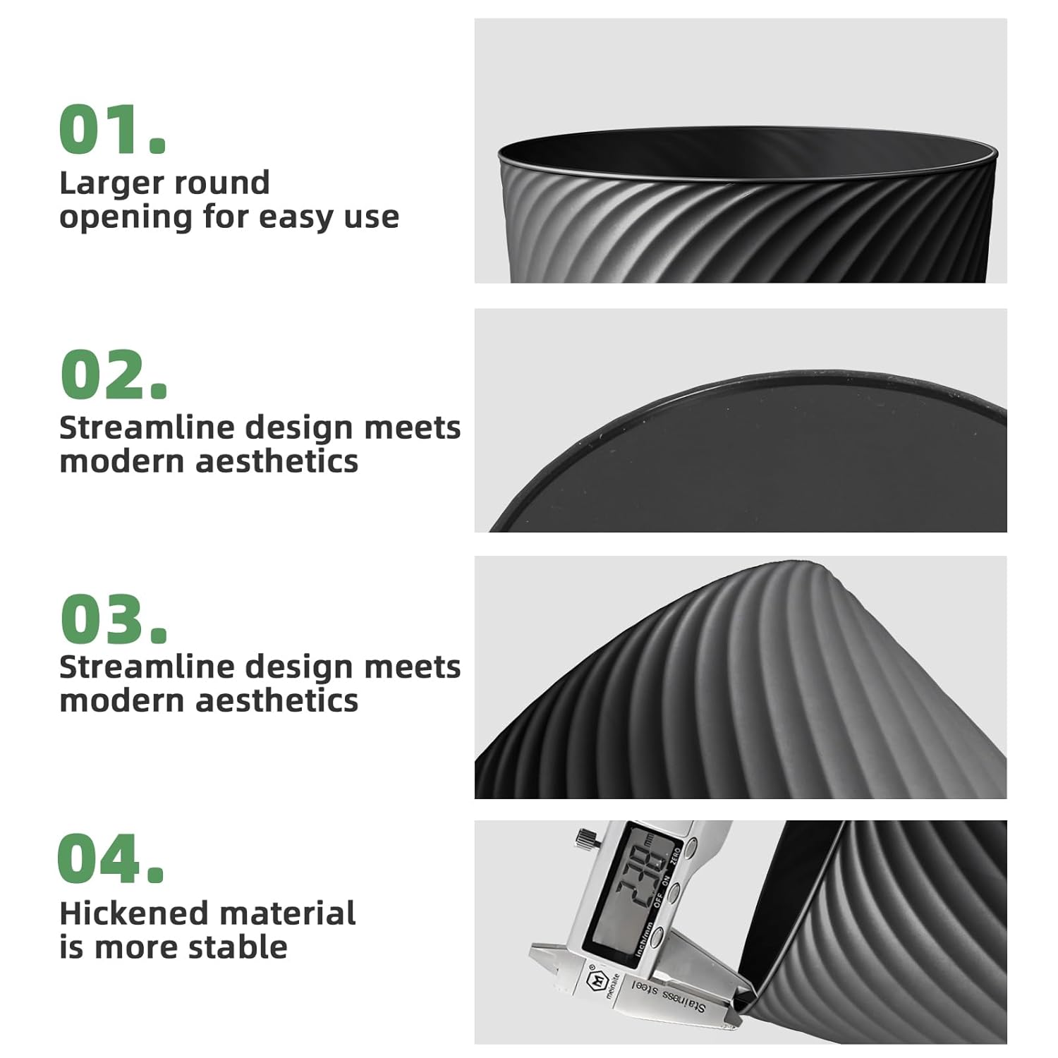 - 💪【Sturdy & Multipurpose】 Built to last with impact-resistant plastic and a raised anti-slip base to reduce wear. Beyond trash, use them as storage bins for toys, laundry, or cleaning supplies—or even as a mini flower pot! Effortlessly wipes clean for hygiene.
