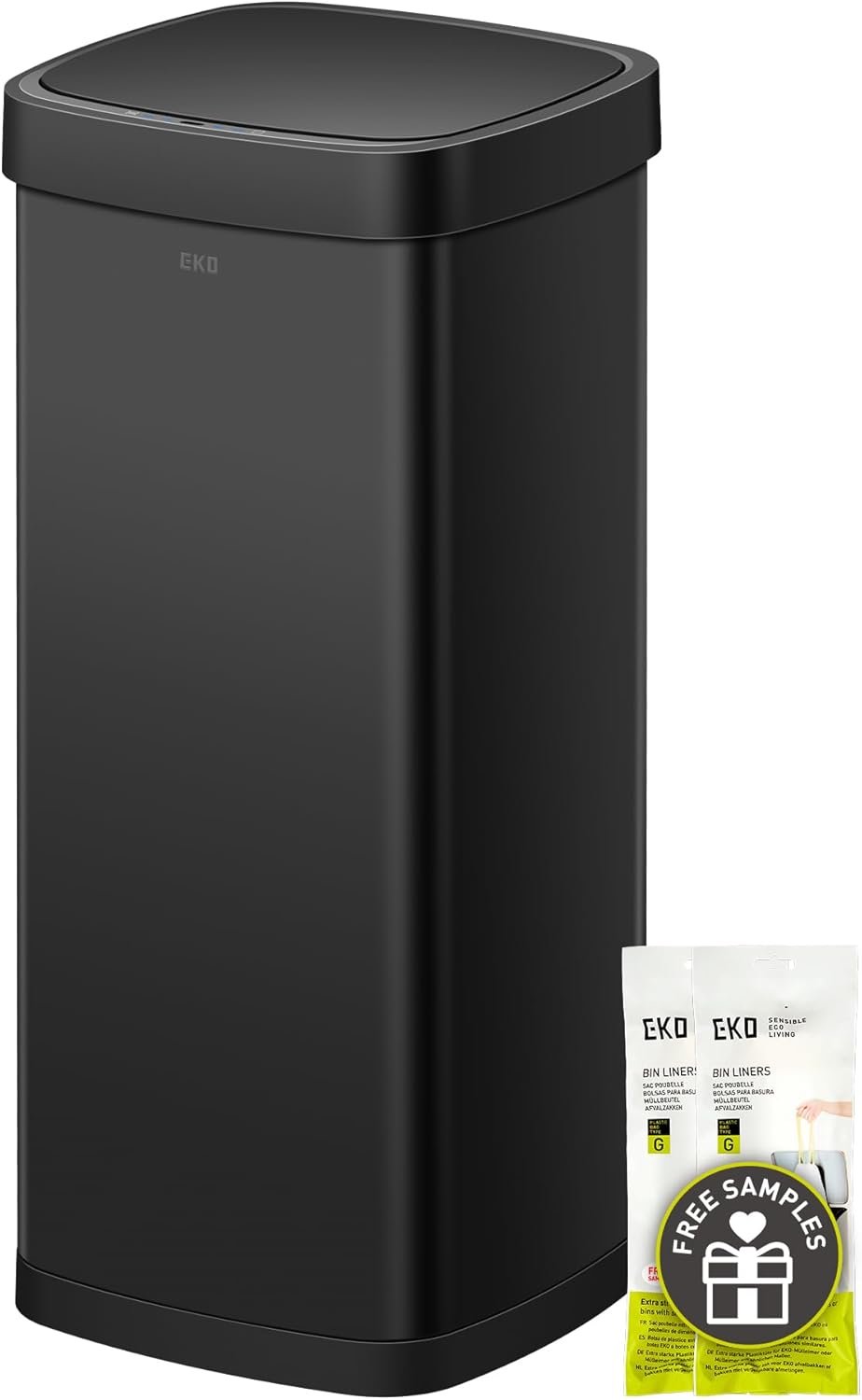 EKO EcoSmart 80L / 21.1 Gallon Motion Sensor Trash Can – Tall, Large Touchless Automatic Kitchen Garbage Bin with Soft-Close Lid for Home or Office, Brushed Stainless Steel, Matte Black