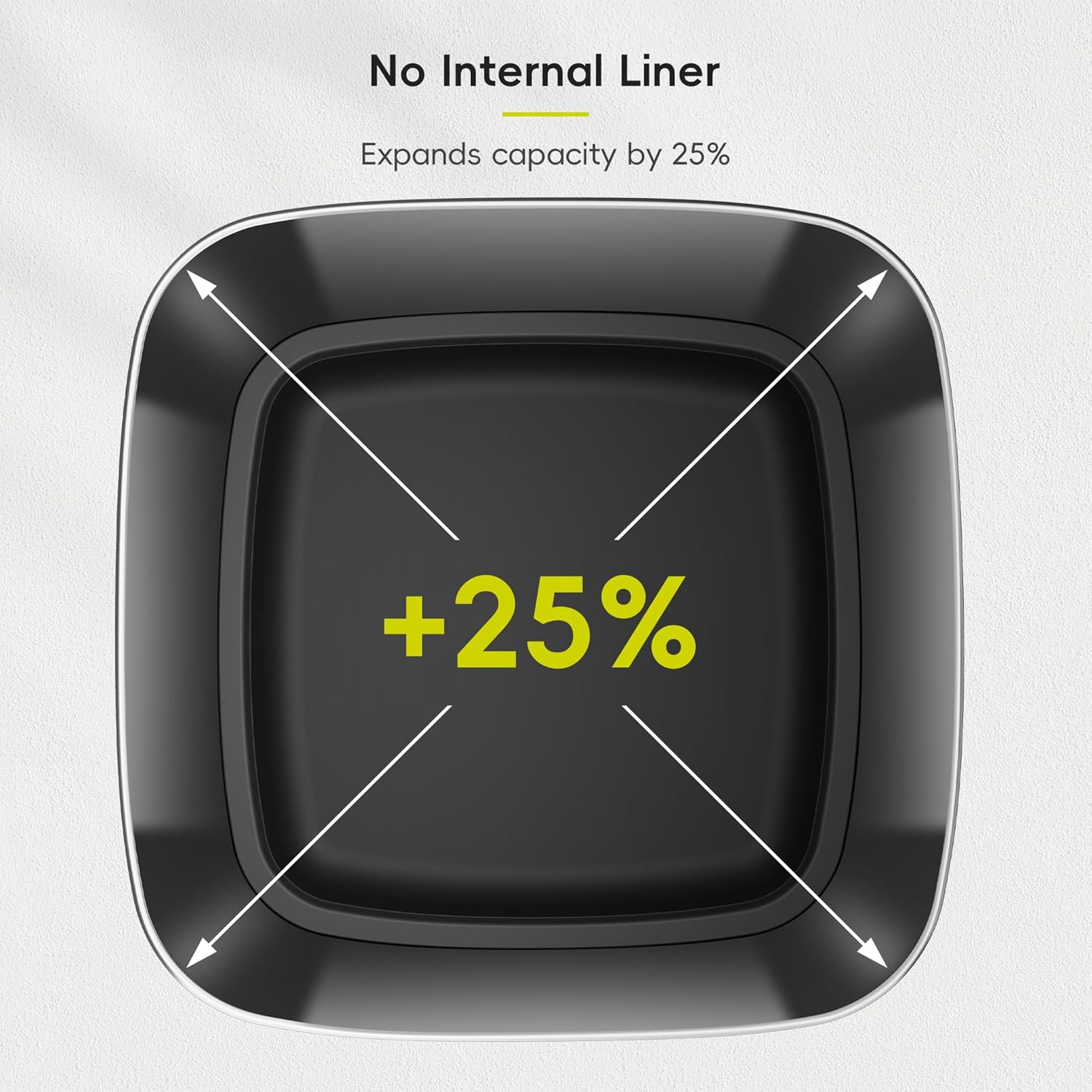 - 25% More Capacity – The liner-free interior design maximizes space, offering up to 25% more room than standard 21-gallon cans — perfect for busy households and high-traffic kitchens.