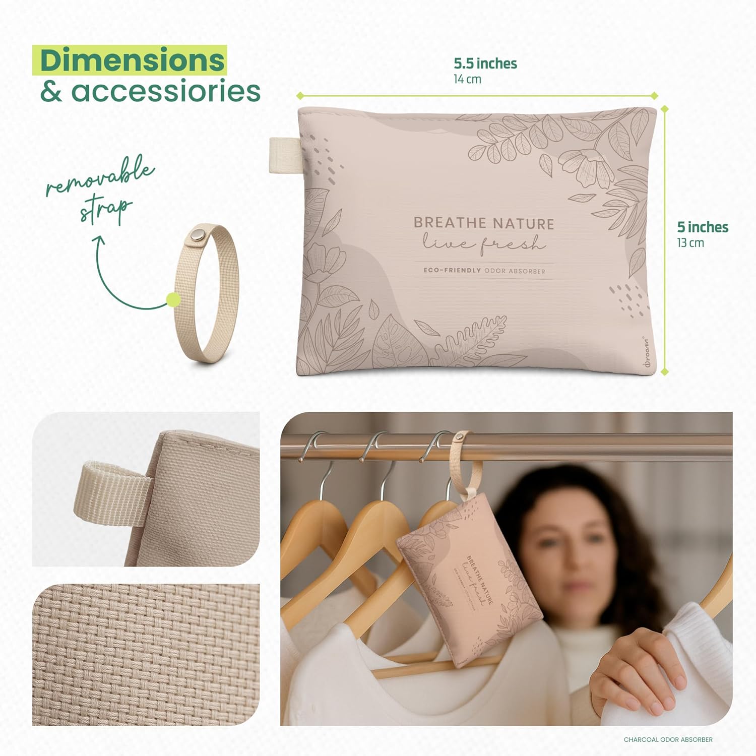 - 100% NATURAL & SAFE ODOR ABSORPTION – Our bamboo charcoal bags act as a powerful natural odor absorber, made from non-toxic materials and completely fragrance-free. A safe and eco-friendly solution for homes with kids and pets—no sprays, no chemicals.