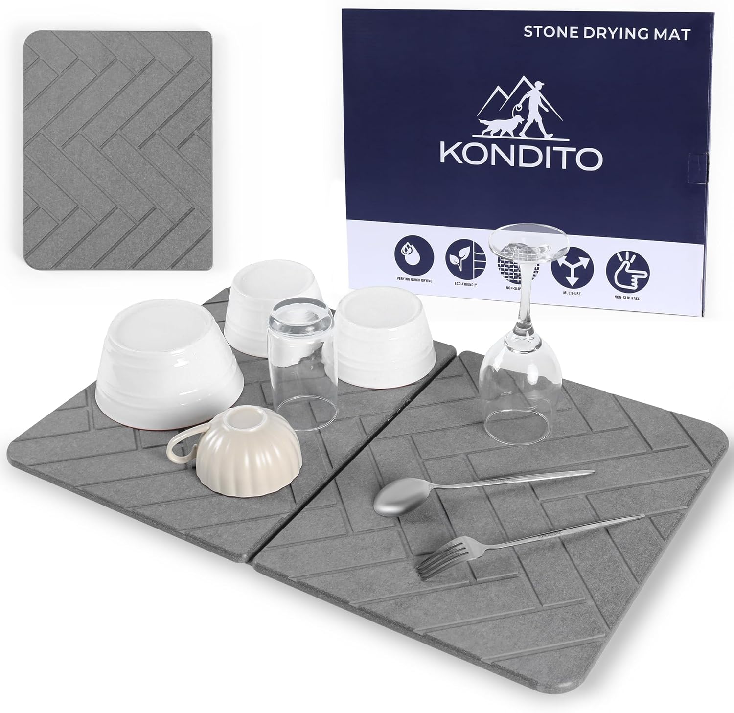 - [INSTANT DRYING DIATOMITE SURFACE] Made from 100% natural diatomaceous earth, this quick dry stone mat kitchen accessory absorbs water in seconds, leaving your countertop a clean, dry, and hygienic surface.
