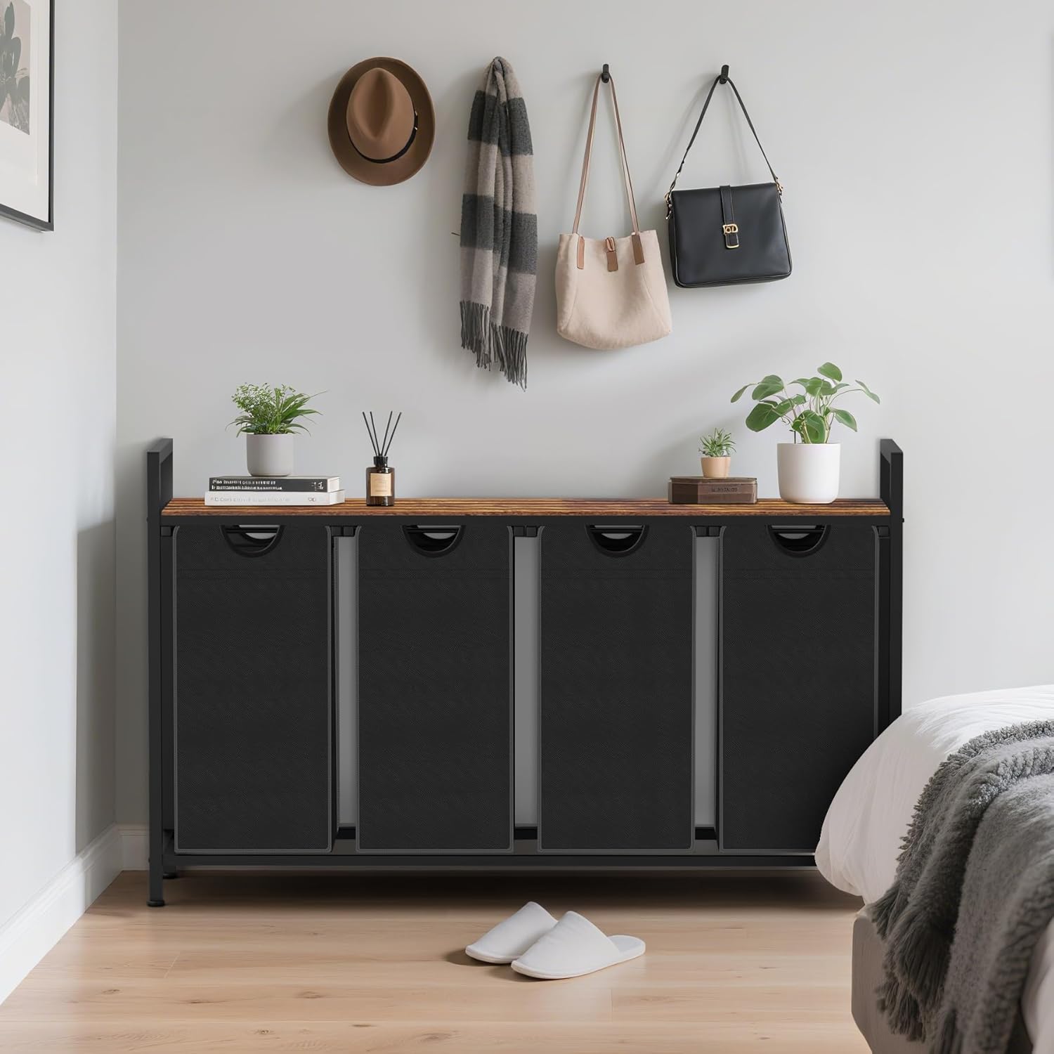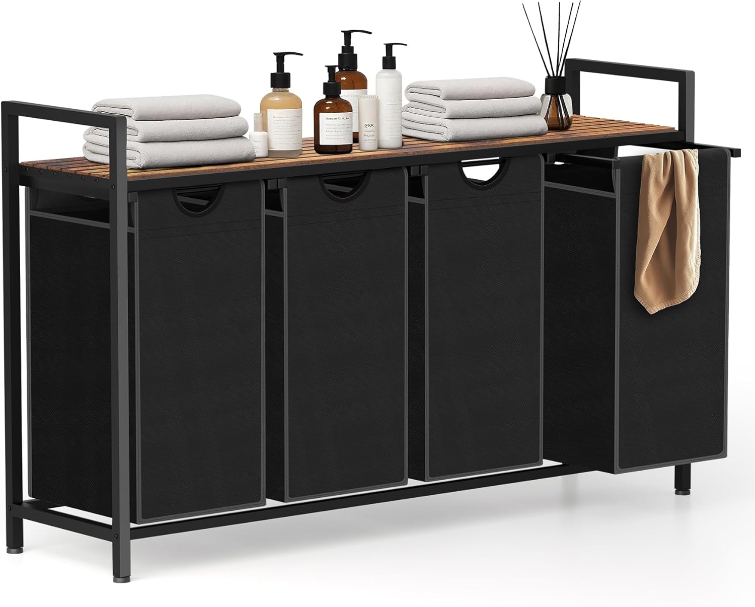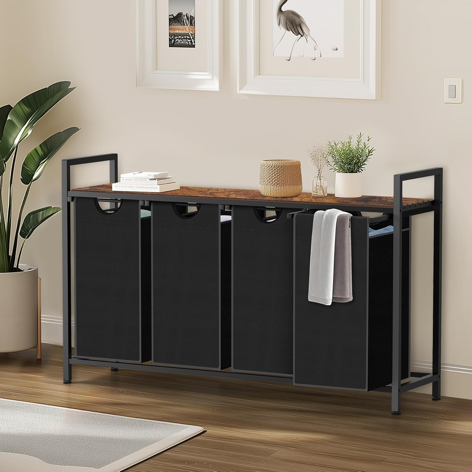 Laundry Hamper, Laundry Sorter with 4 Pull-Out Removable Oxford Fabric Bags Cloth Laundry Basket 4 x 10 Gallons (Black and Rustic Brown)