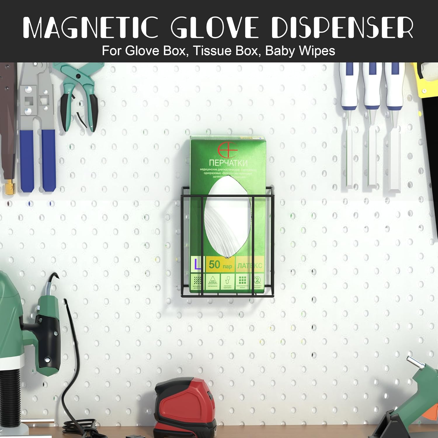 Magnetic Glove Box Holder Wall Mount, Disposable Glove Dispenser, Rubber Latex Tissue Box Organizer for Tool Garage Workshop Kitchen