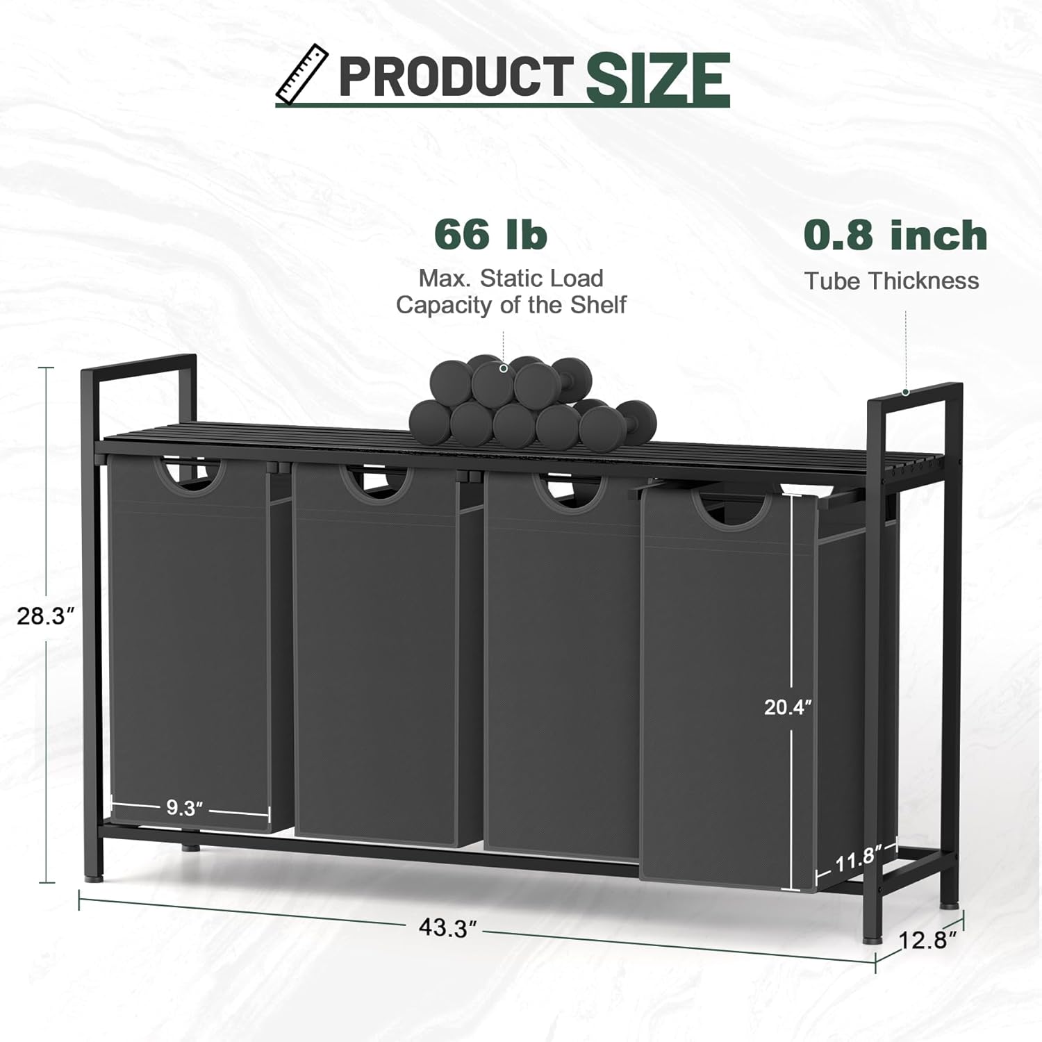 - Large Capacity - Featuring a 40 gallons capacity and an integrated open-shelf design, this laundry hamper helps you make the most of your storage space, easily accommodating both your clothes and accessories.