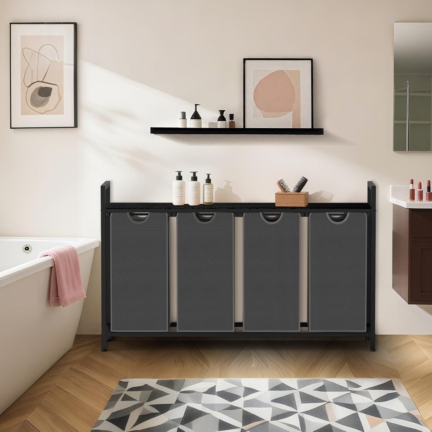 Laundry Hamper, Laundry Sorter with 4 Pull-Out Removable Oxford Fabric Bags Cloth Laundry Basket 4 x 10 Gallons (Grey and Charcoal Black)
