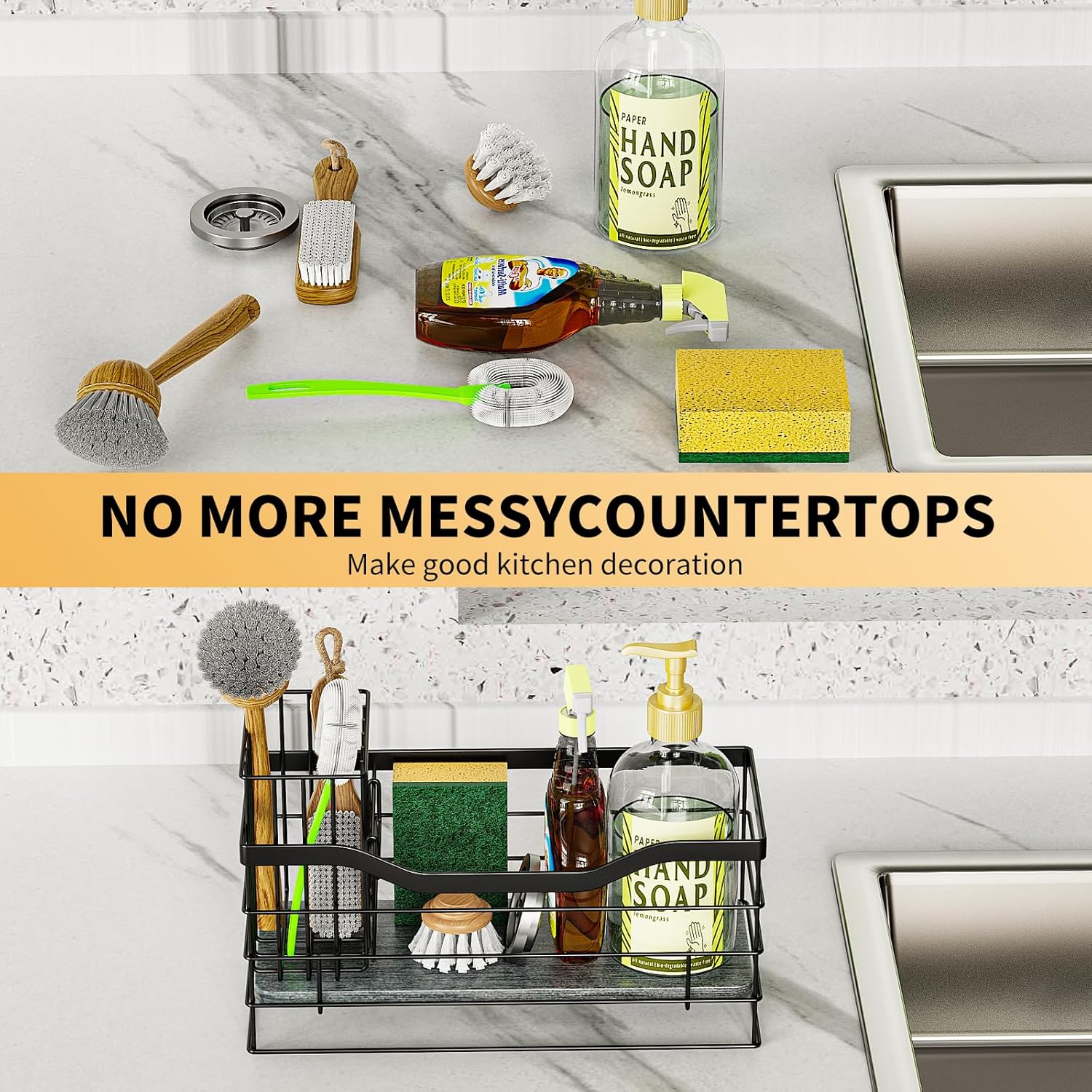 - Smart Drying Design Kitchen Sink Caddyโ Elevated slots + drip tray stone accelerate drying ๏ผno more smelly kitchen sponge holder for sink.