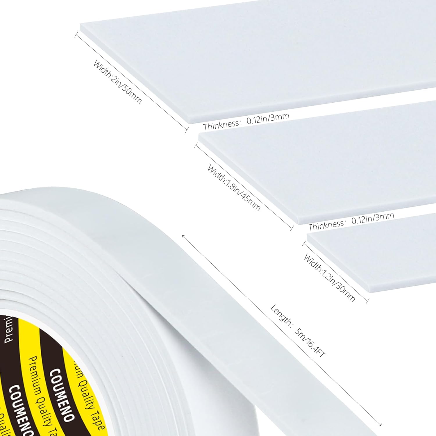 3 Pack EVA Single-Sided Adhesive Foam Tape 1.2inx16.4FT Single-Sided Sealing Strip Foam Pad Sponge Tape Window Weatherproof Whtie