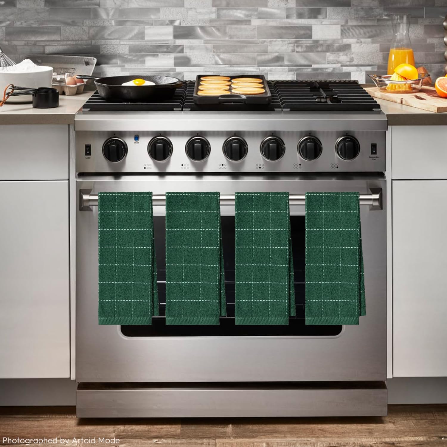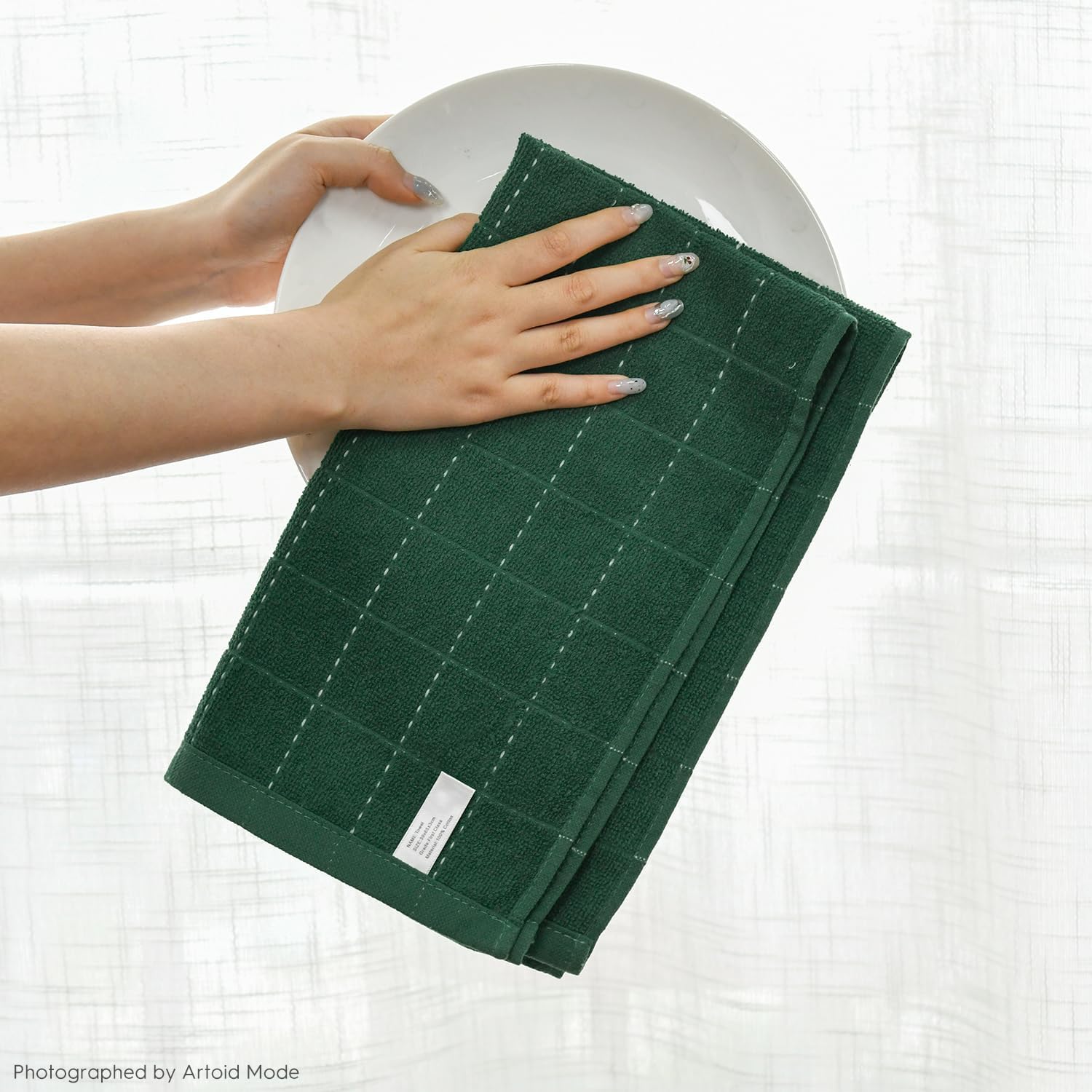 Artoid Mode Checkered Designed Cotton Green Terry Kitchen Dish Towels, 15x25 Inch Soft Absorbent Quick Drying Family Cleaning Tea Towels Set of 4