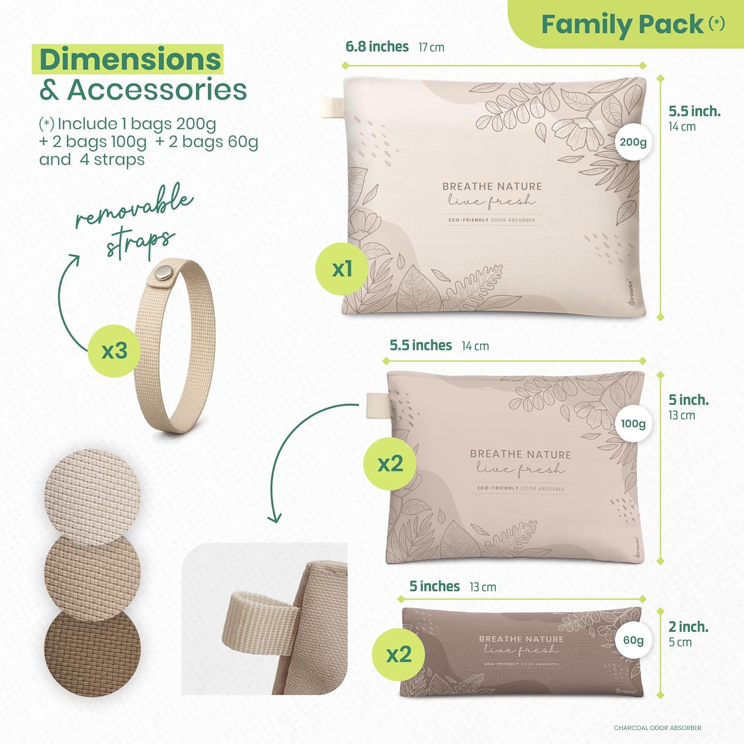 - STYLISH AIR PURIFIERS – Designed to blend seamlessly into any space, our charcoal deodorizer bags offer powerful freshness with a clean, modern look. Use them as a car charcoal odor eliminator or place them in your home to eliminate odors effectively