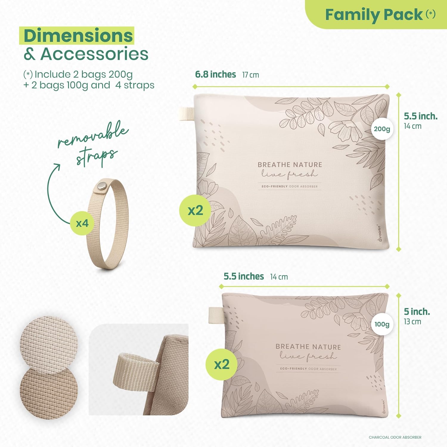 - STYLISH AIR PURIFIERS – Designed to blend seamlessly into any space, our charcoal deodorizer bags offer powerful freshness with a clean, modern look. Use them as a car charcoal odor eliminator or place them in your home to eliminate odors effectively