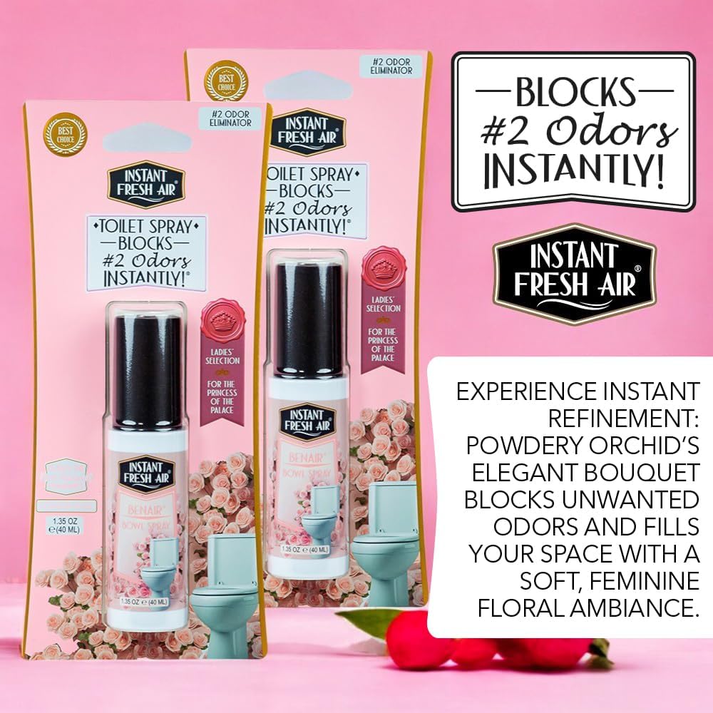 2-Pack: Superior Toilet Spray for Women with Instant Odor Elimination, Powdery Rose Fragrance, Odor Eliminator Bathroom Spray, Travel Size, Long-Lasting, Eco-Friendly, 1.35 Oz. - INSTANT FRESH AIR