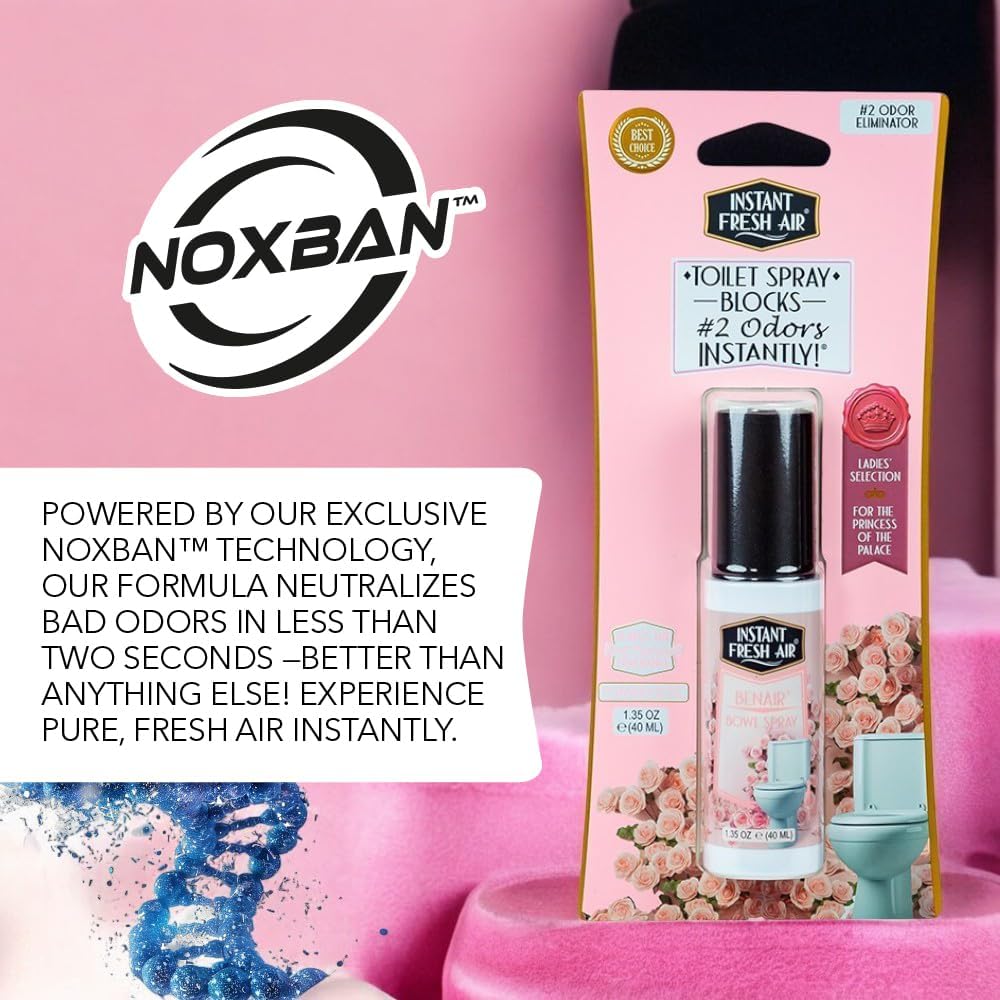 - Instant Odor Elimination: Experience the power of Noxban Odor Elimination Technology with our toilet spray. As a guest bathroom essential, it neutralizes odors in under 2 seconds, leaving behind a relaxing aroma. Ideal for any cleanliness enthusiast's bathroom spray odor eliminator.