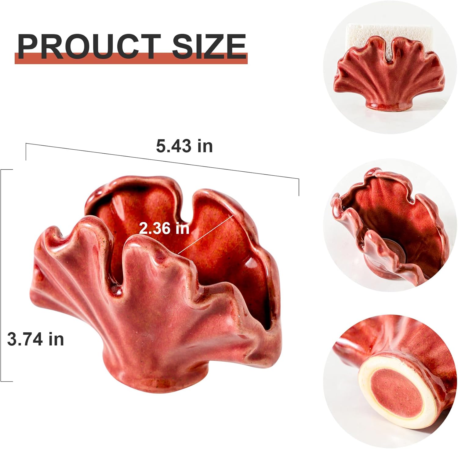 Ceramic Sponge Holder,Sponge Holder for Kitchen Sink,Compact Sink Caddy Organizer-Scouring Pad and Dish Sponge Holders,Farmhouse Kitchens Decor Cute Kitchen Gadgets Accessories(Red)