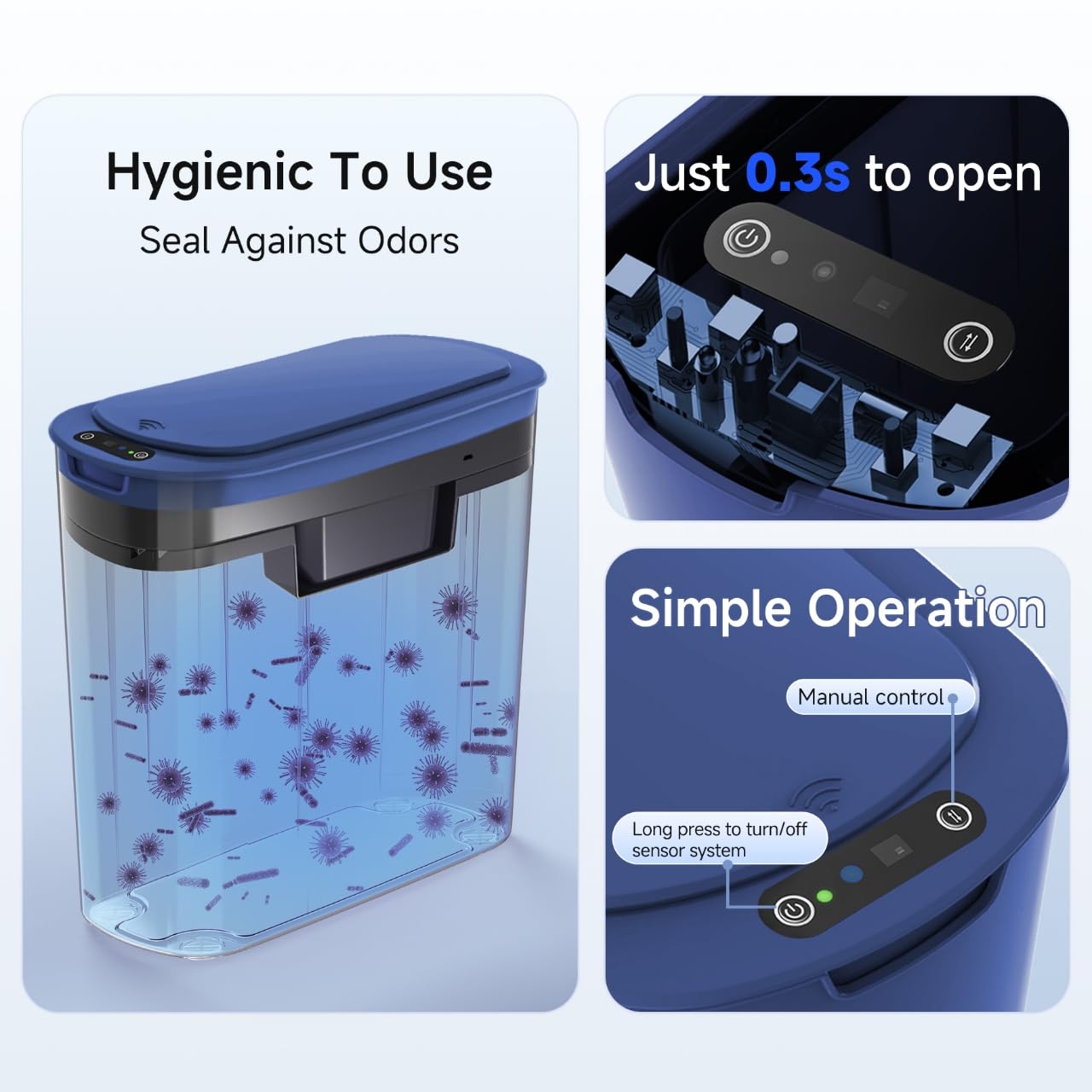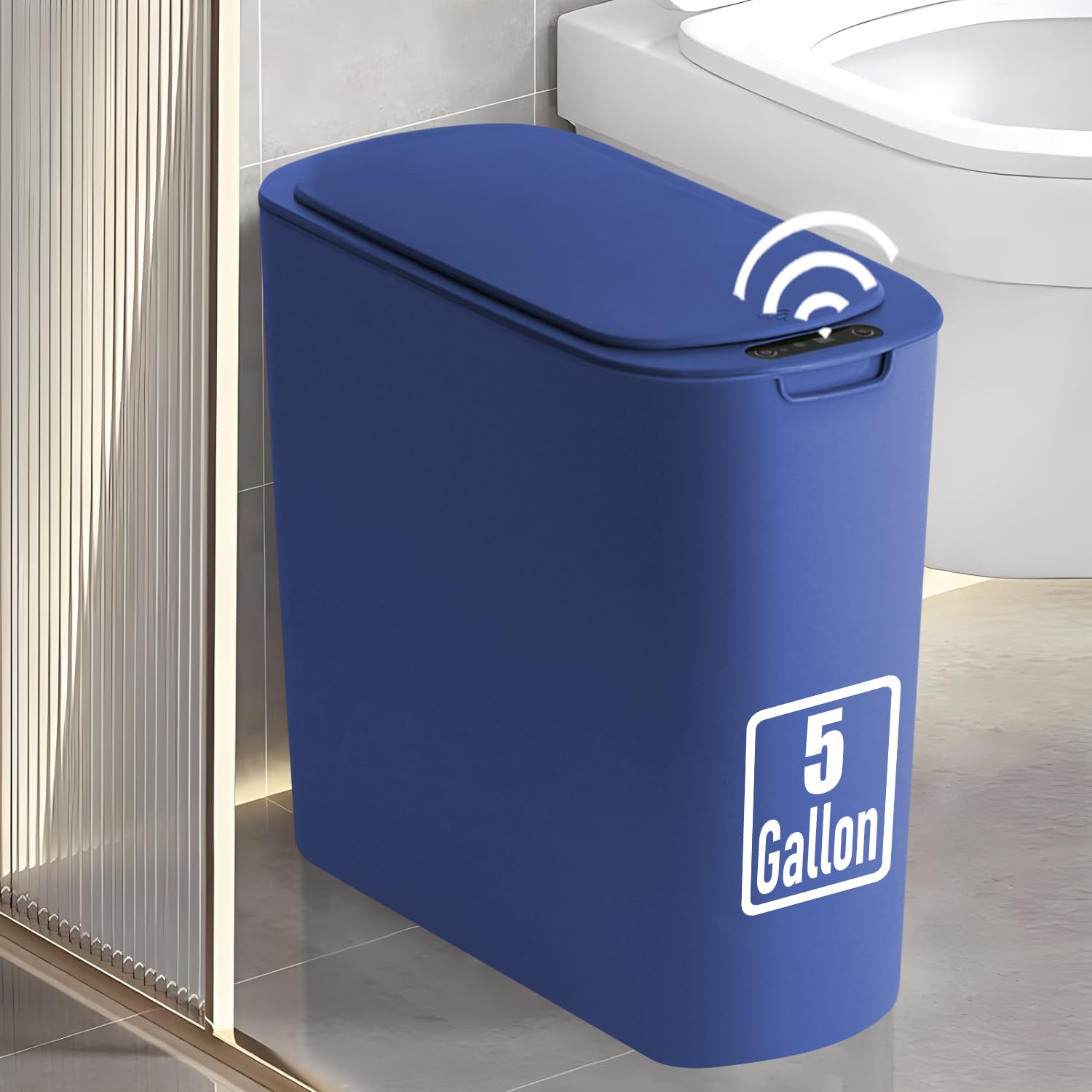 5 Gallon Motion Senor Bathroom Trash Can with Lid, Automatic Garbage Can Touchless, Smart Plastic Waste Basket for Narrow Spaces, Bathroom, Office, Bedroom, Living Room (Blue)