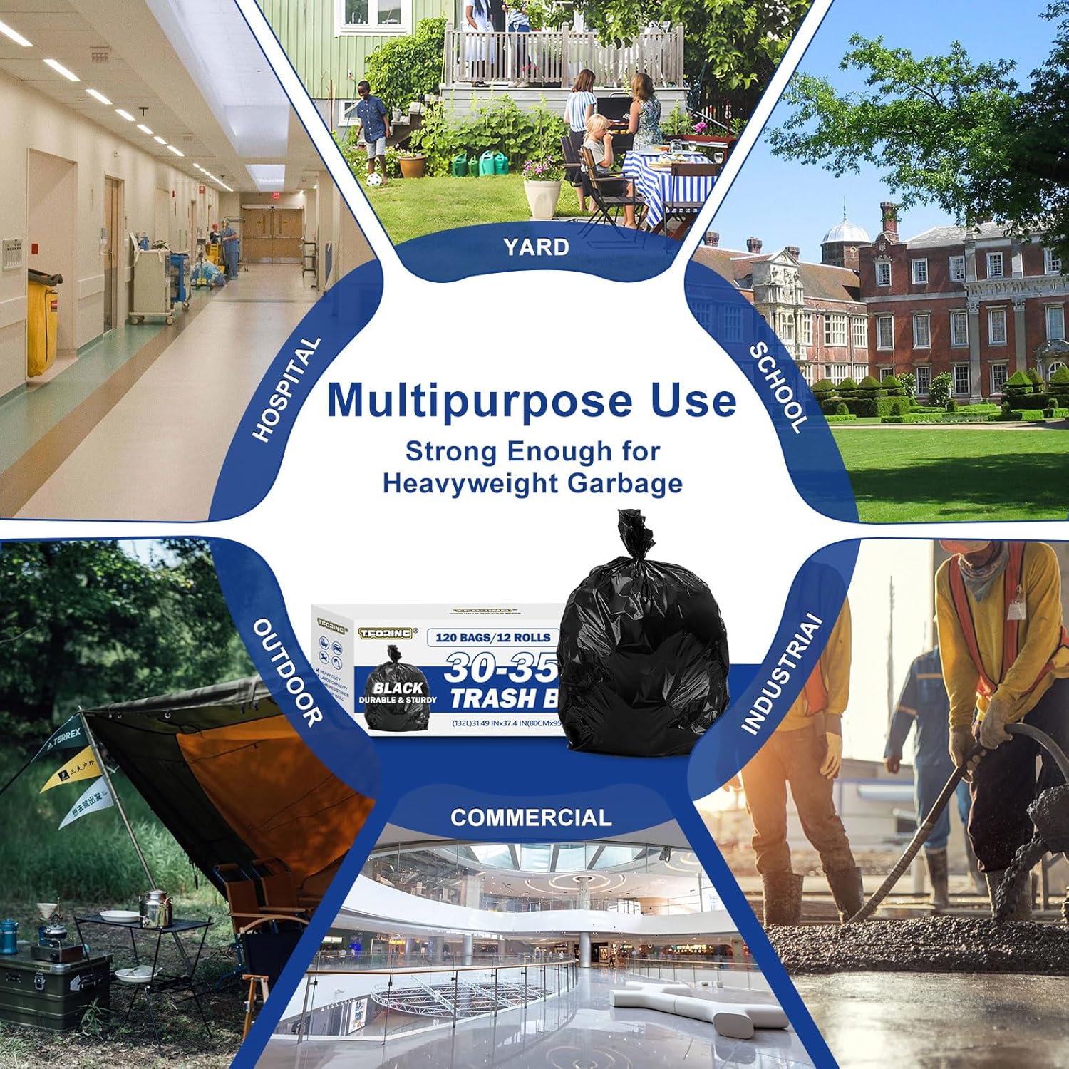 30-35 Gallon Black Trash Bags 120 Count - 32" x 37" Large Garbage Bags, 30+ Gallon Strong Trash Can Liners for Home, Commercial Use,Yard Waste, Bulk