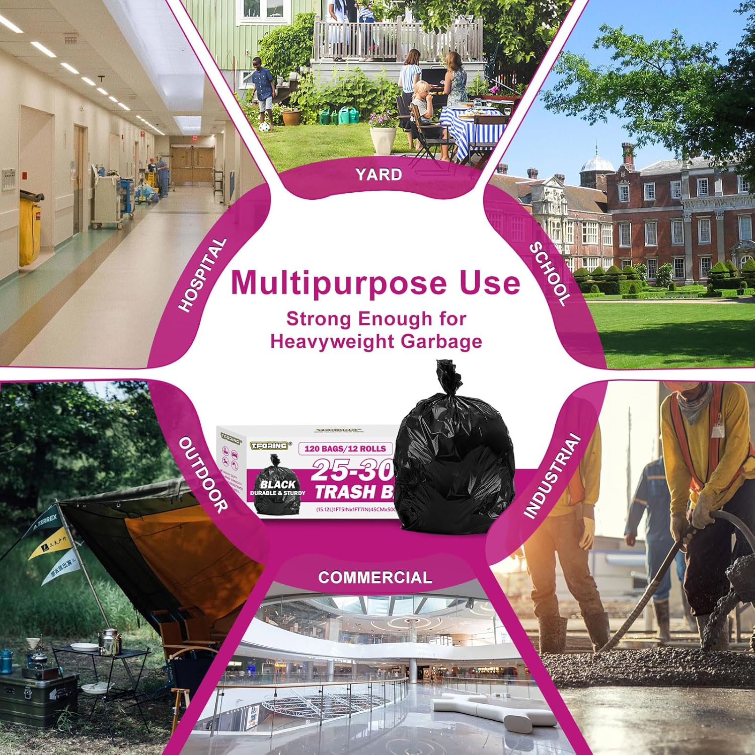 25-30 Gallon Trash Bags Black 120 Count - 32" x 36" Large Kitchen Garbage Bags, 20+ Gallon Trash Can Liners Unscented, Multipurpose for Home, Office, Daily Household Use
