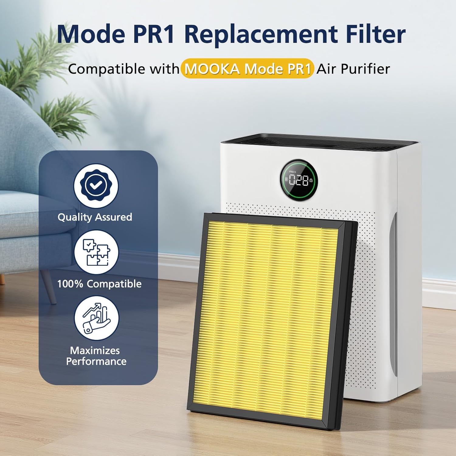 - 【COMPATIBLE MODELS】The PR1 hepa replacement filter is for Mooka PR1 air purifier home large room up to 2200sq.ft for smoke, pet odors, pet dander, pollen, wildfire. Filter dimension: 11.41"L x 10.75"W x 1.18"Th