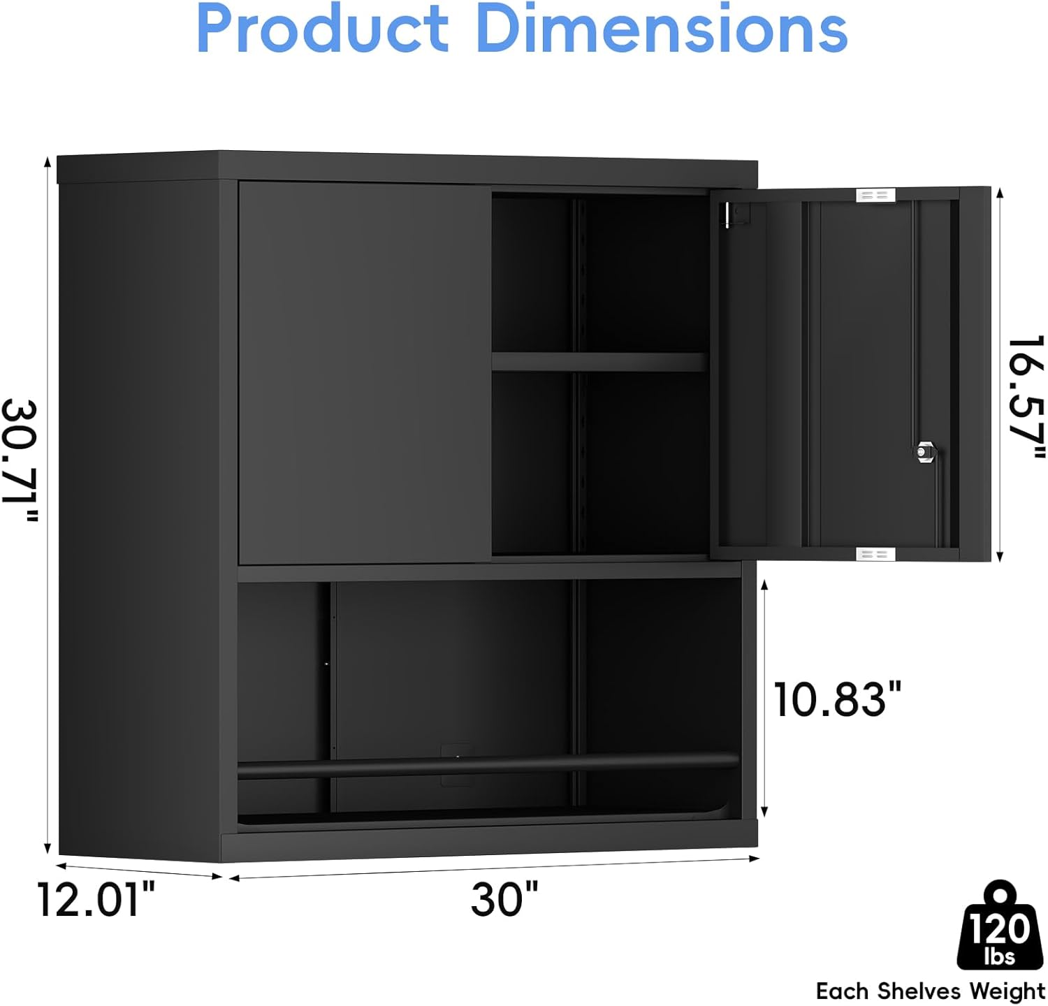 - [Durable and Space-Saving Design] Made from high-quality steel, this wall cabinet is built to last. Its compact design makes it ideal for tight spaces while offering generous storage capacity.