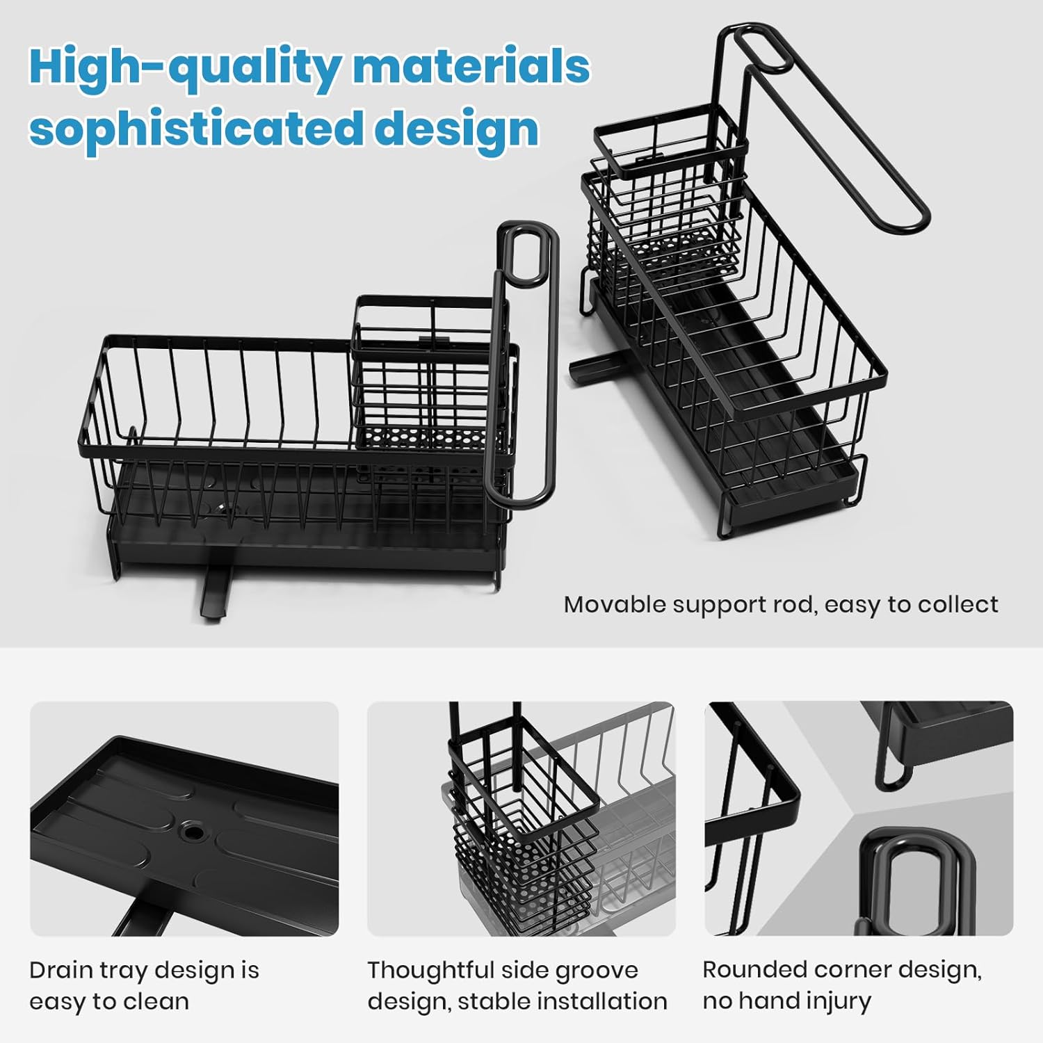 - Kitchen sink caddy organizer durable - The sink caddy kitchen sink organizer is made of high-quality carbon steel, which can effectively prevent rust and defo