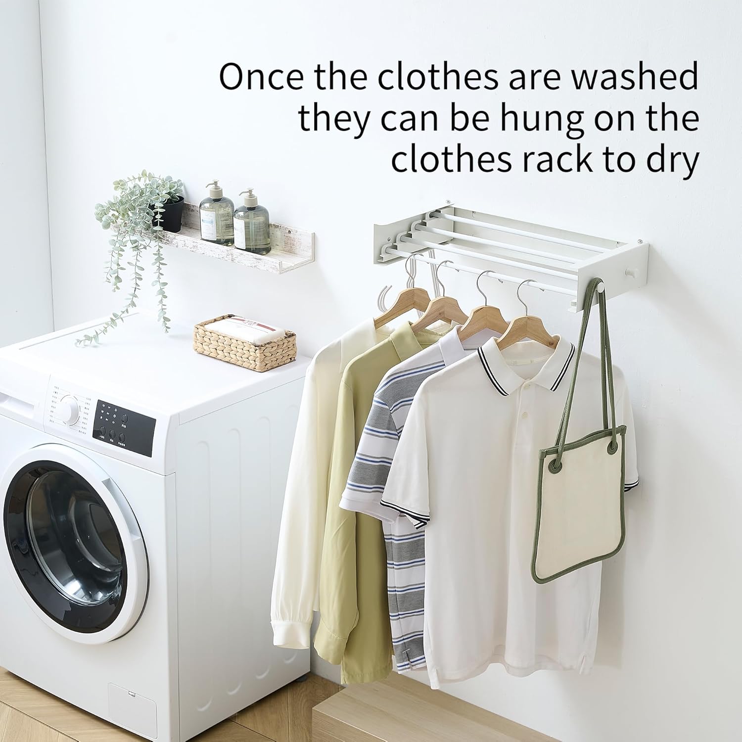 - Save Space: Folding for indoor or outdoor, this clothes drying rack is a great space saver. Compact, retractable wall-mounted design to maximize your limited space or add elegance to your spaces. Great for space constrained homes, apartments, hotels, laundry rooms. When not in use, fold it quickly to store until ready to use again