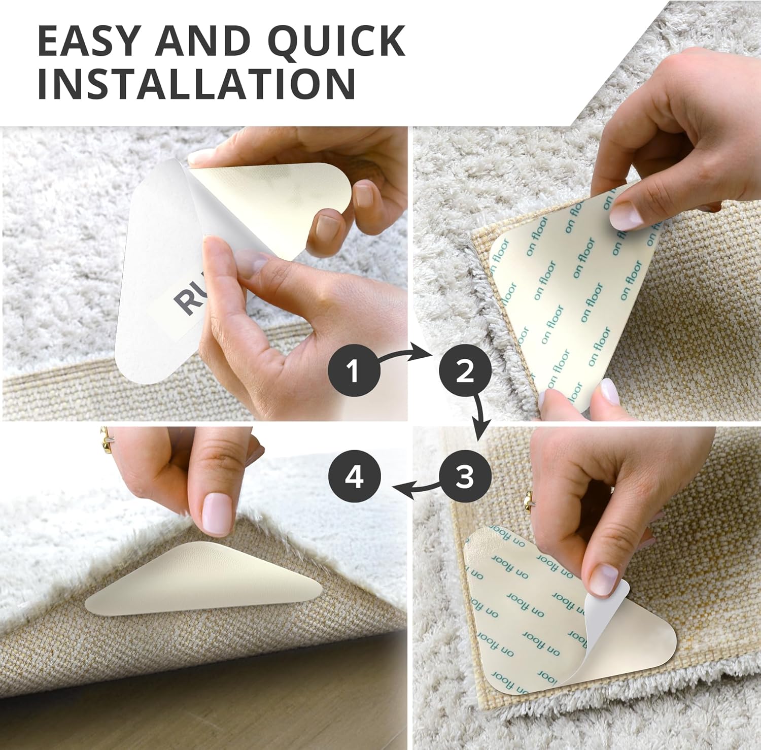- ✌️ X-Protector Anti Slip Rug Grips work with any type of your rugs - carpet tape double sided, stops rugs from sliding, and keeps them in place. Carpet pad makes corners flat instantly and forever!