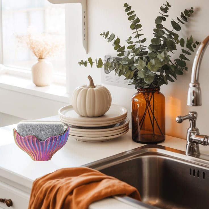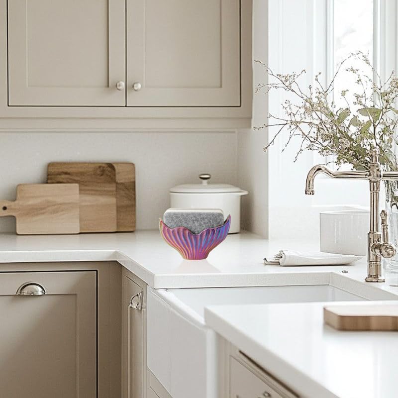 - 【Sturdy Construction】 Crafted from high-quality ceramic, this ceramic sponge holder showcases stunning mermaid-inspired rainbow colors. The durable material resists moisture and keeps its shape and beauty over time, making it a long-lasting kitchen sponge holder.