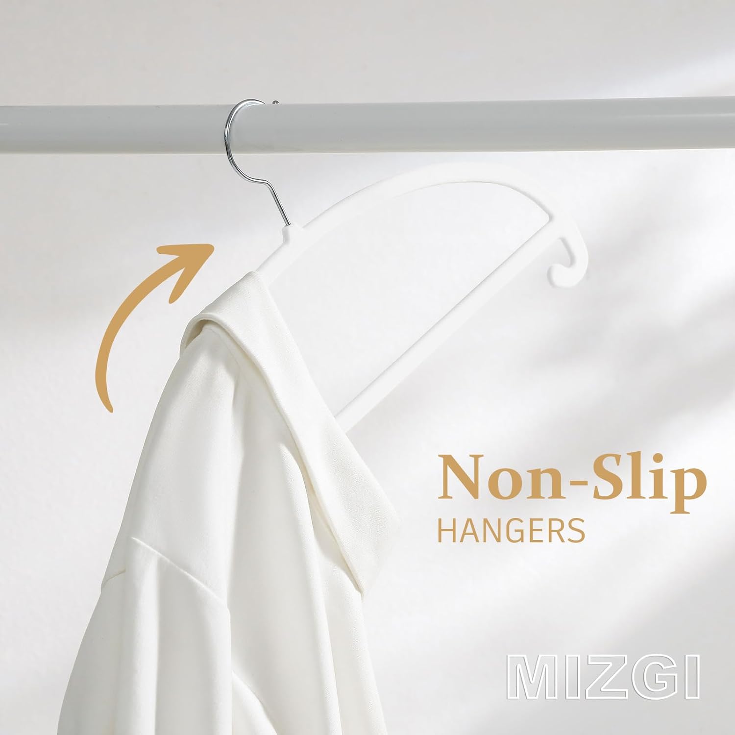 MIZGI 50 Pack White Velvet Hangers - No Shoulder Bumps, Heavy Duty Non-Slip Chrome Hooks for Jackets, Coats, Pants
