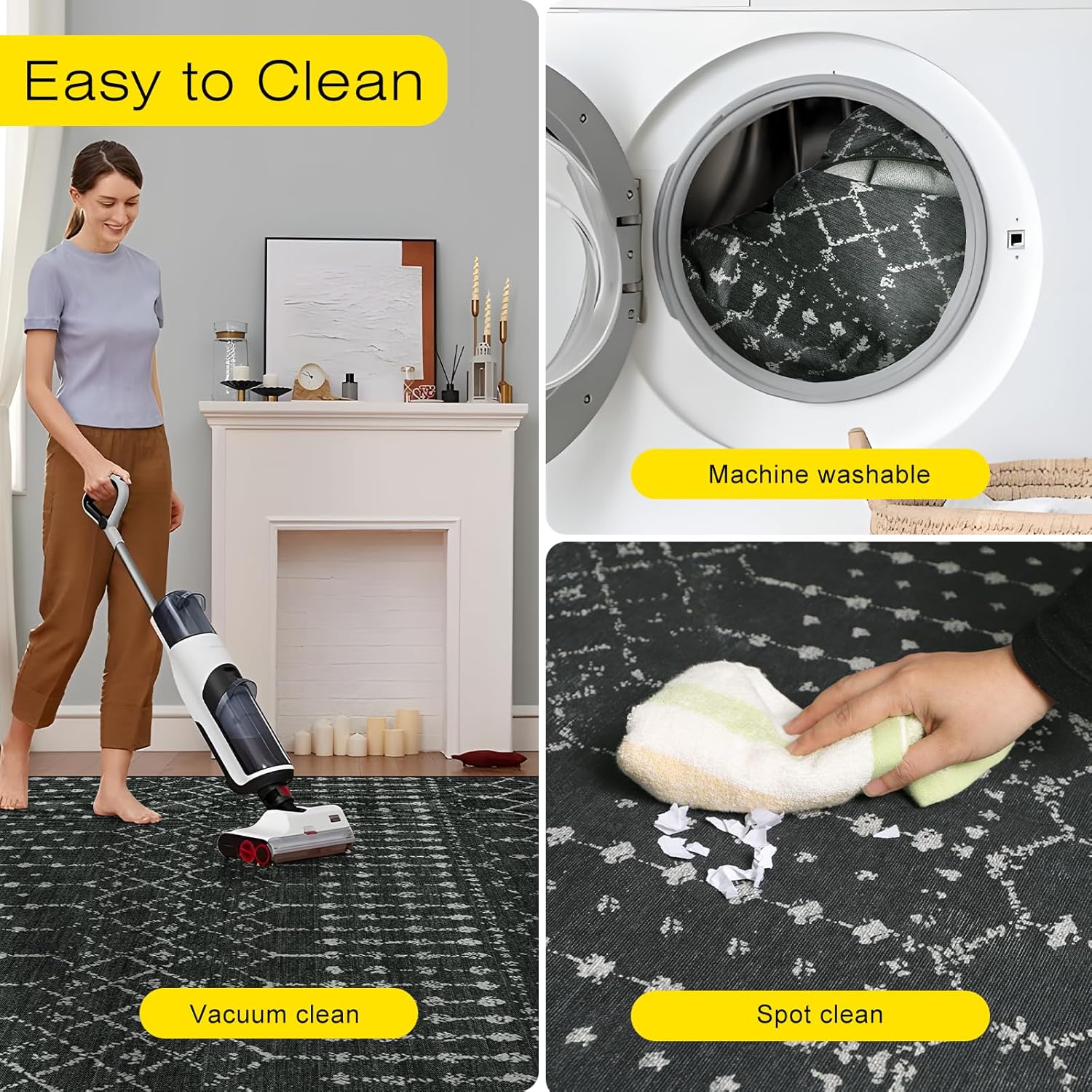 - STYLISH BLACK PATTERN DESIGN: Our area rug features a classic black pattern, offering a modern and elegant touch that complements various home styles. Whether in the office, living room, or bedroom, it enhances the ambiance with sophistication.