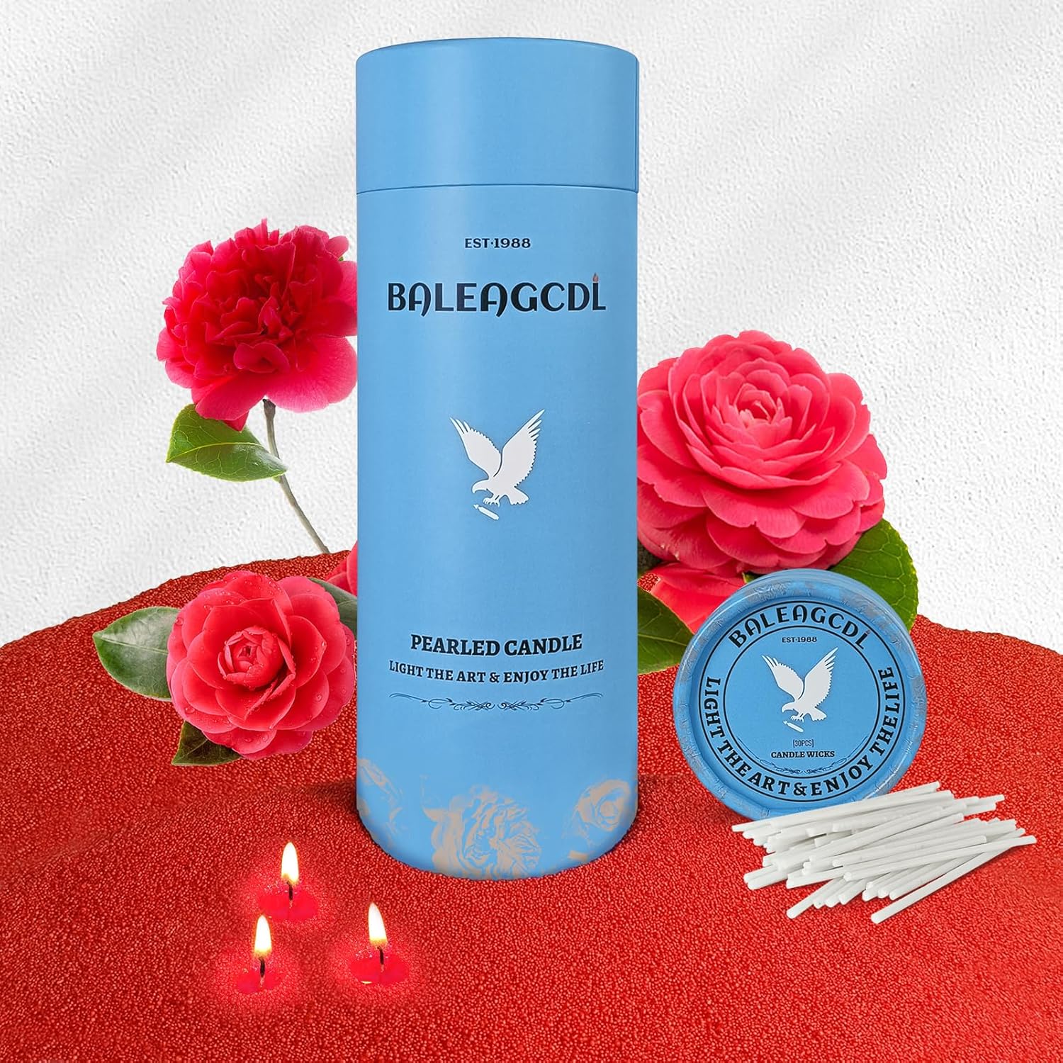 Camellia Scented Red Pearled Candle 18oz Luxury Sand Candle Granulated Wax - 30 Cotton Wicks - Wax for Candle Making Decorative Candles Smooth and Clean Burning Lasts up to 120 Hours
