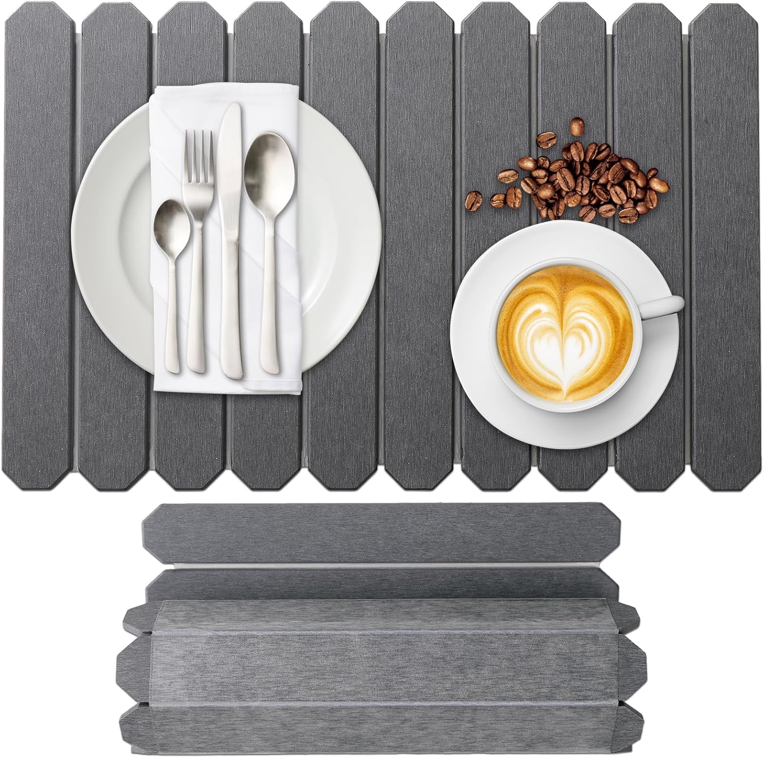 - Collapsible Design & Easy to Storage - This stone dish drying mats is designed with 24x16 inches to fit for most of kitchen counter, it is larger than the ordinary drying mat to put more dishes. You can fold-up this drying pad and put it into the kitchen cabinets when you donโt need to use it