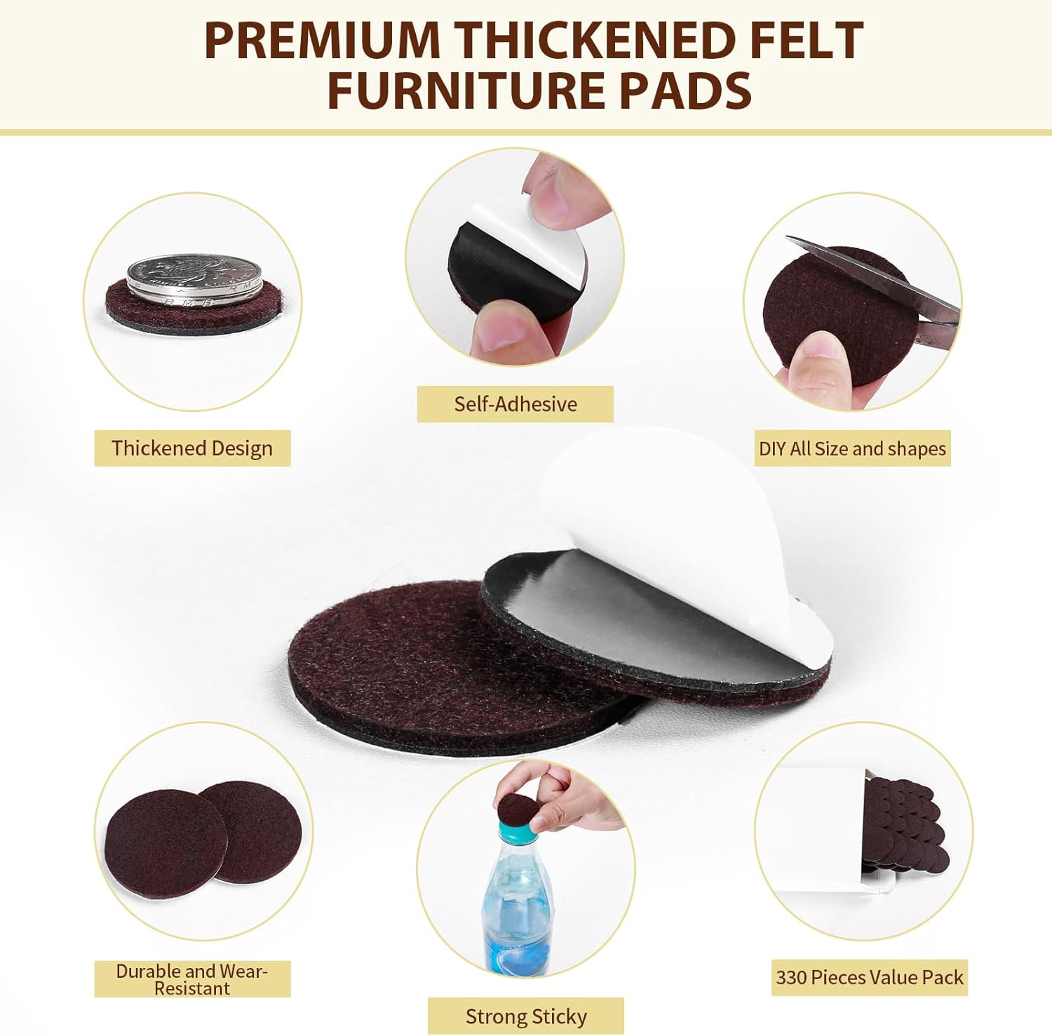 - ❤️【Value Pack】Get 330 pieces in one box—includes brown round and square pads in multiple sizes (0.375" to 6"). Everything you need for full home protection!