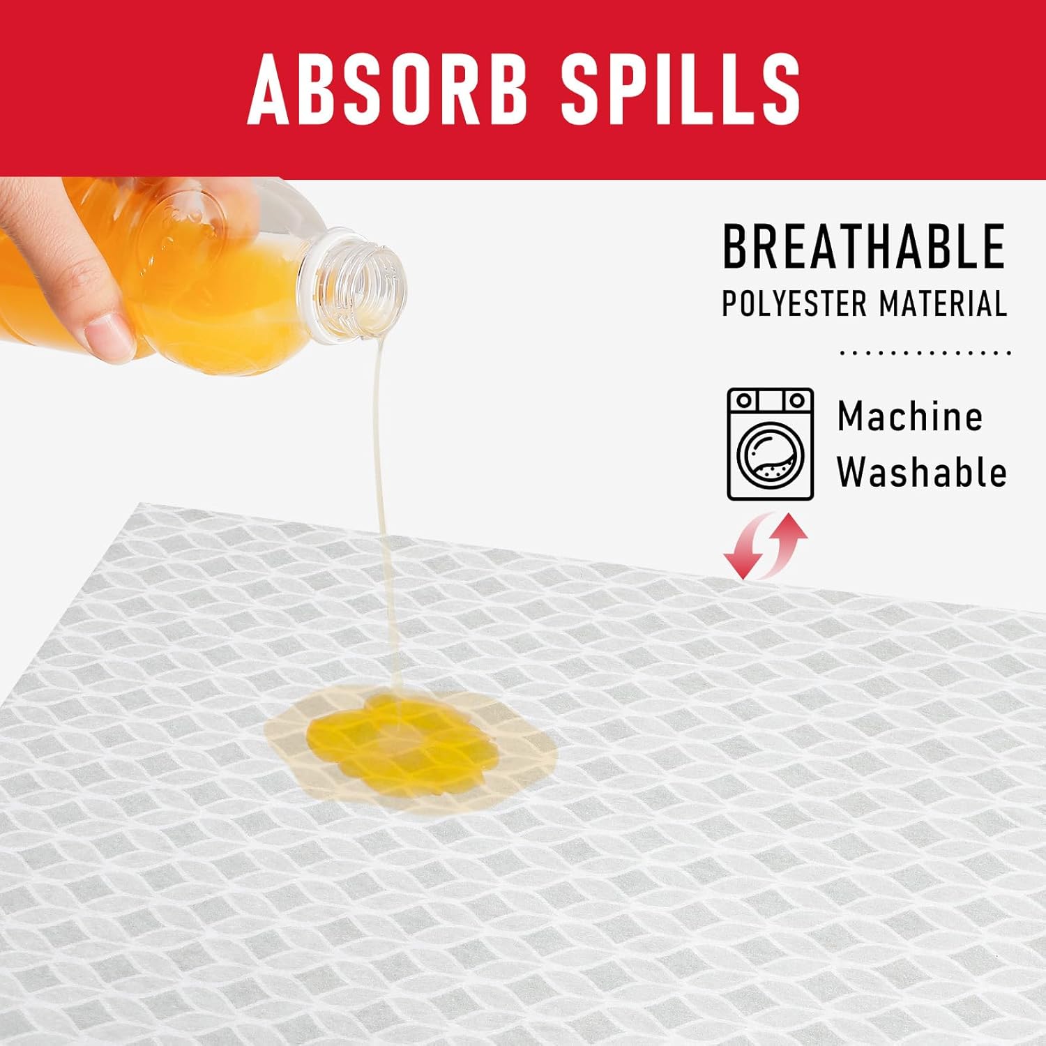 - Non-slip, Non-adhesive: Refrigerator liners have non-slip silicone dots on the back of the liner, which provides superb grip and keeps the liner in place without sliding around or curling like plastic refrigerator liners; The surface of the refrigerator liner is made of non-stick fabric that prevents the items on it from moving around