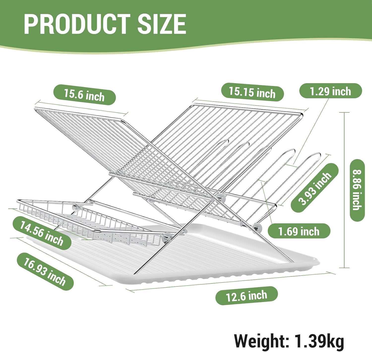 - Deep Drip Tray Protects Surfaces: Large slide-out tray effectively catches all draining water, keeping your kitchen counter or sink area clean and dry. Simple to remove and empty.