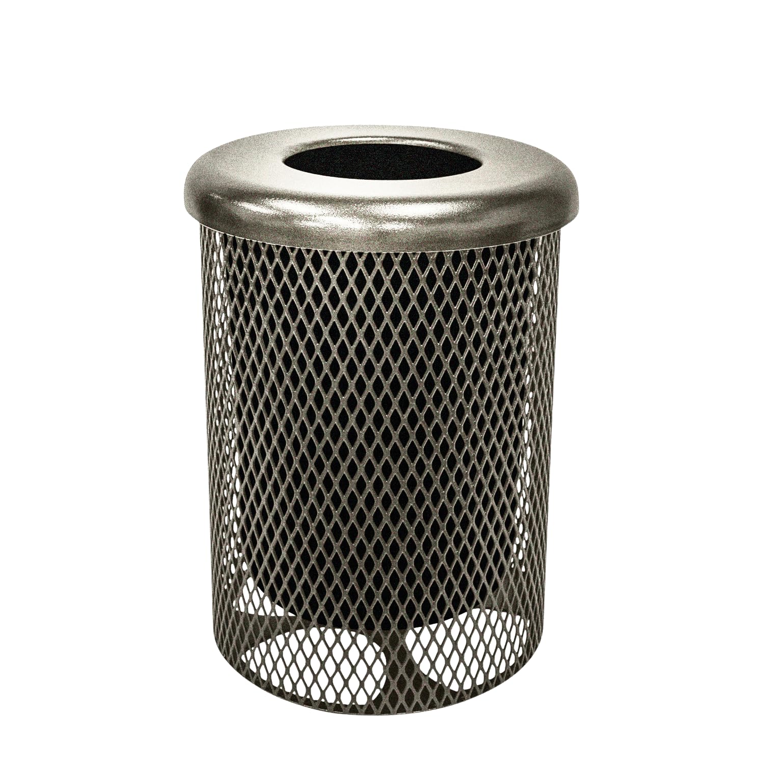 COATEDOUTDOORFURNITURE 32-Gallon Heavy-Duty Expanded Metal Round Trash Receptacle, Commercial Outdoor Waste Bin with Liner & Black Flat Top Lid – Made in America (Textured Gold Vein)