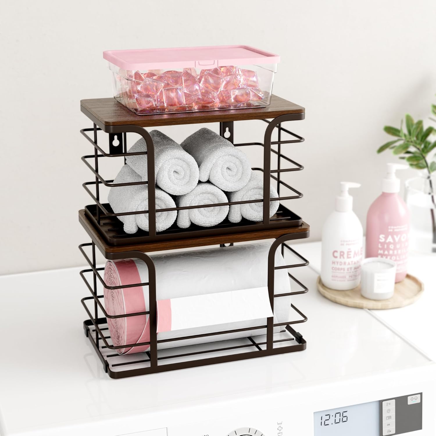- 3 Versatile Options for Use: Use as a countertop organizer, wall mount with included adhesive strips (wait 24 hours post-install, for smooth hard walls), or drill-mount with provided accessories. Fits any home storage setup—laundry room, kitchen, or pantry