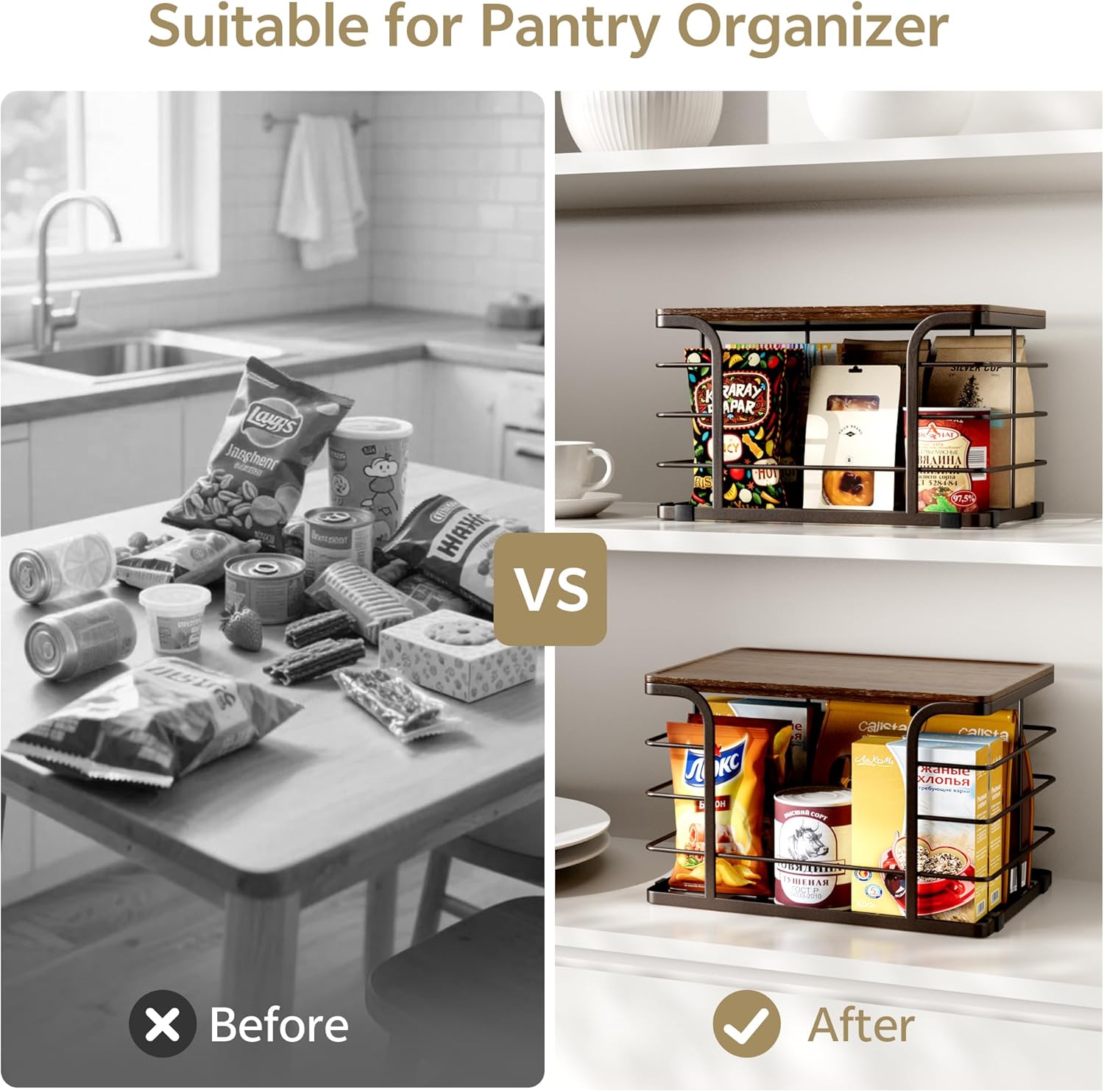 2 Pack Extra Large Pantry Baskets with Bamboo Top,Stainless Steel Trash Bag Dispenser for Kitchen Sink and Laundry Room Organization,Brown