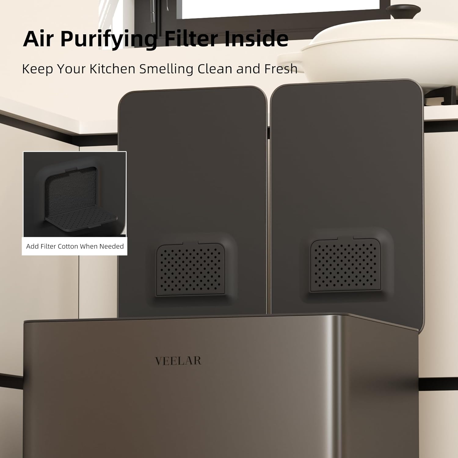 - STEP MECHANISM:Veelar double trash can kitchen, with hands-free foot pedal operation ensures hygienic waste disposal while maintaining cleanliness.