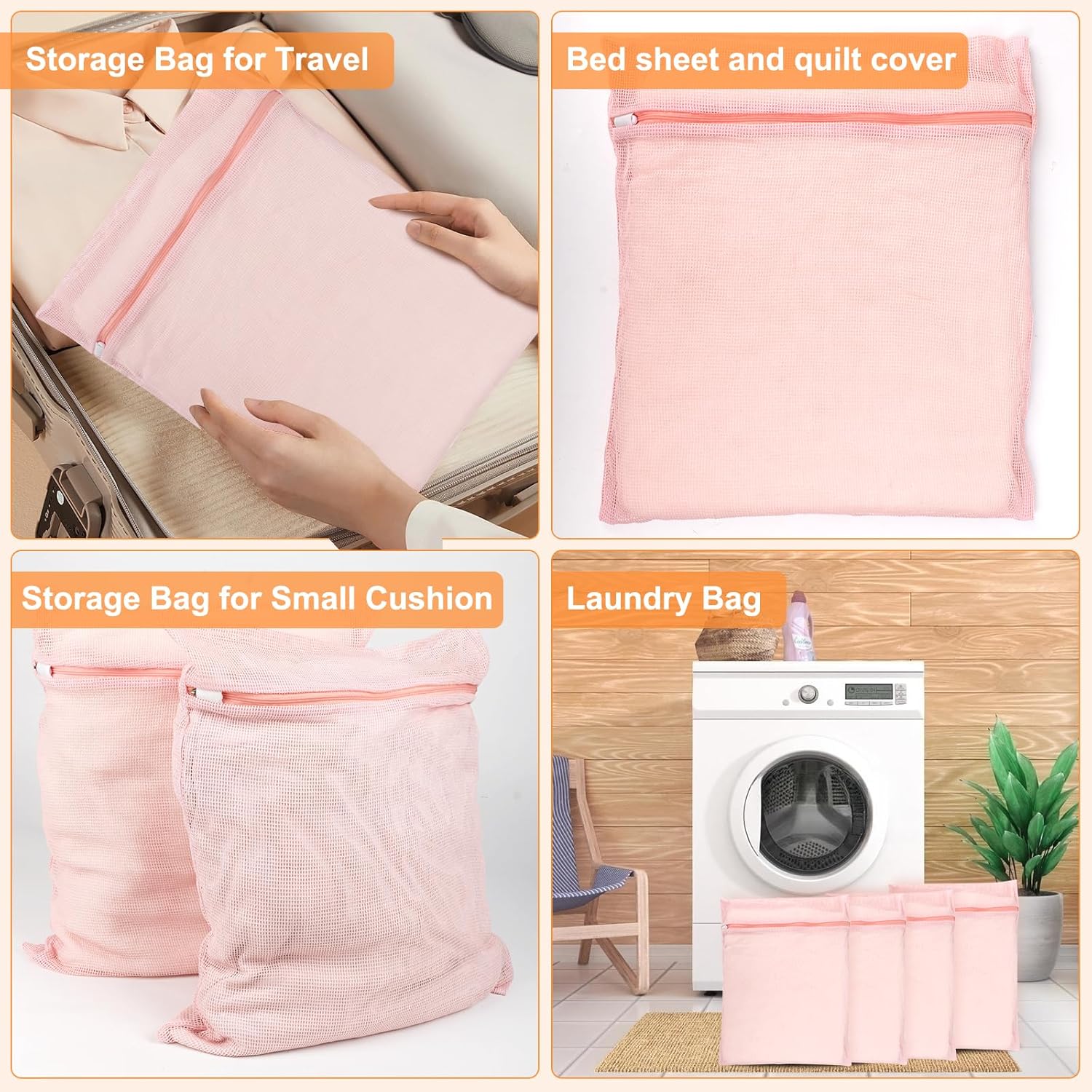 - ă Packaging List ăPINK 4 PIECES COTTON MESH ZIPPERED LAUNDRY BAGS, LARGE AND STURDY: Our 14.96-inch x 17.71-inch laundry bags are made of pure cotton for long-lasting use!