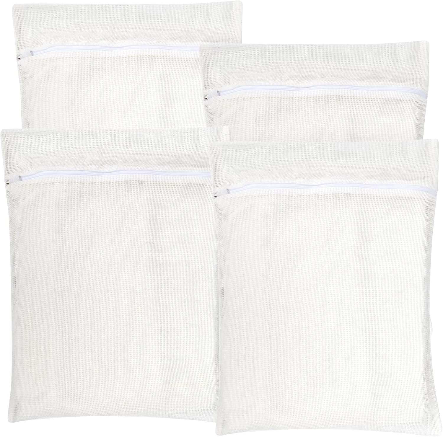 - 【 Packaging List 】WHITE 4 PIECES COTTON MESH ZIPPERED LAUNDRY BAGS, LARGE AND STURDY: Our 14.96-inch x 17.71-inch laundry bags are made of pure cotton for long-lasting use!