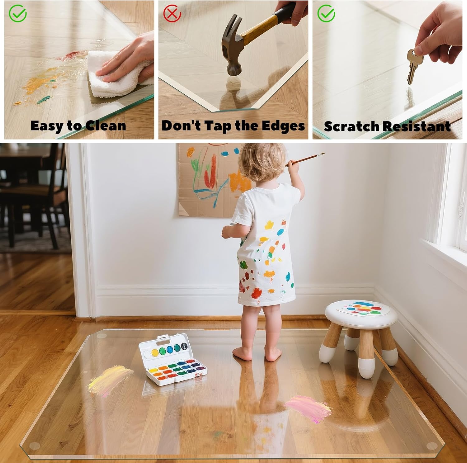- ✅FULLY CLEAR DESIGN : The clear octagon glass floor mat, allowing for a clear view of the floor or carpet, It will not obstruct the pattern on the floor and add a bright luster to the floor. In addition smooth surface, easy to clean food residue. VSAR House tempered glass chair mat is the best choice for home workplace and offices.