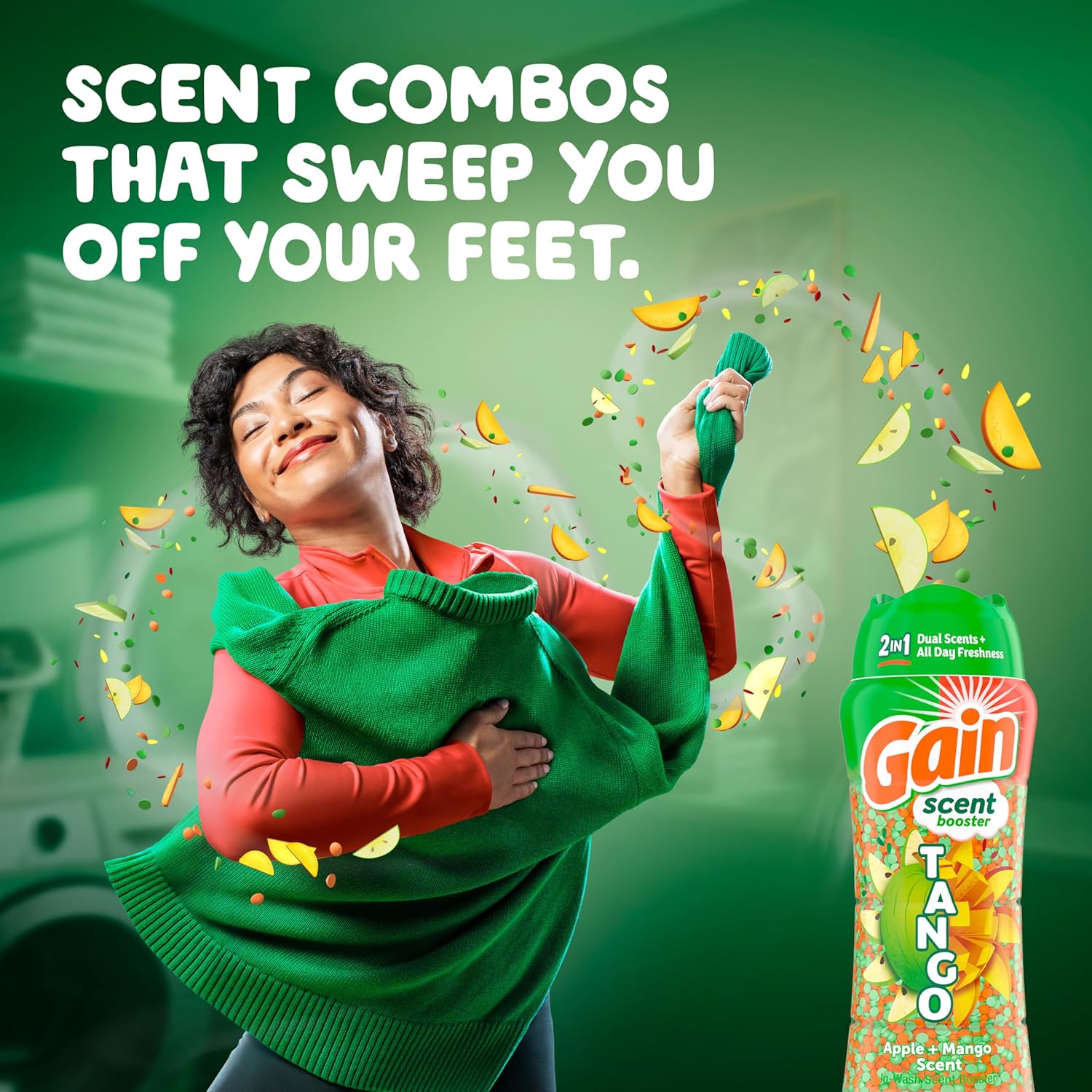 - Includes one 21.1 OZ bottle of Gain Tango Dual Scent Laundry Beads in Apple and Mango Scent