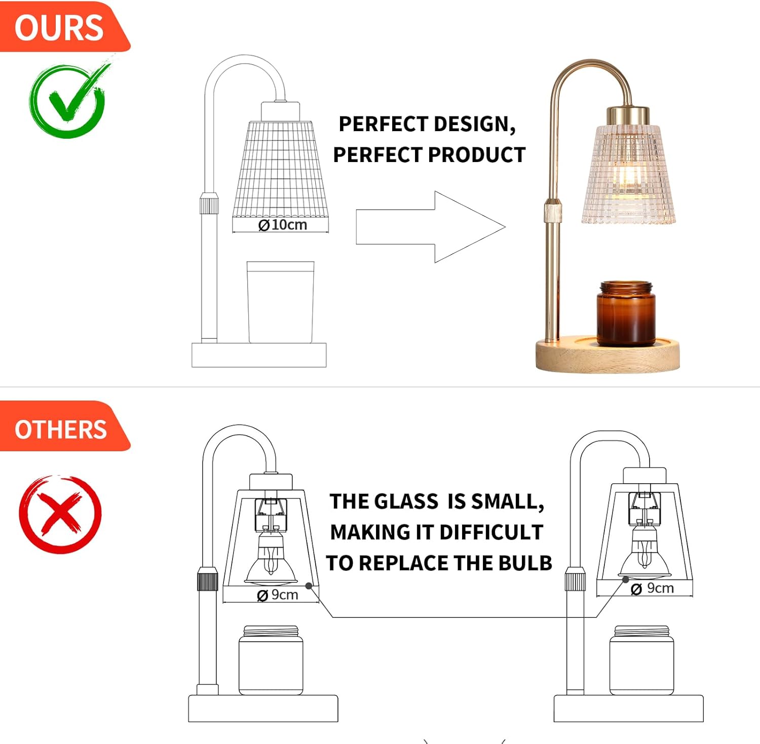 - Brand Quality and FITS ALL CANDLE SIZES: The fragrance electric wax melt warmer is compatible with multiple candles of different heights.The height from the base to the lampshade is adjustable, range from 4 inches to 5.7 inches, It can hold jar candles up to 6 inches in height. MEIXISUE brand produces high-quality materials and high-quality wooden base, anti slip pads under the base to ensure its stability.