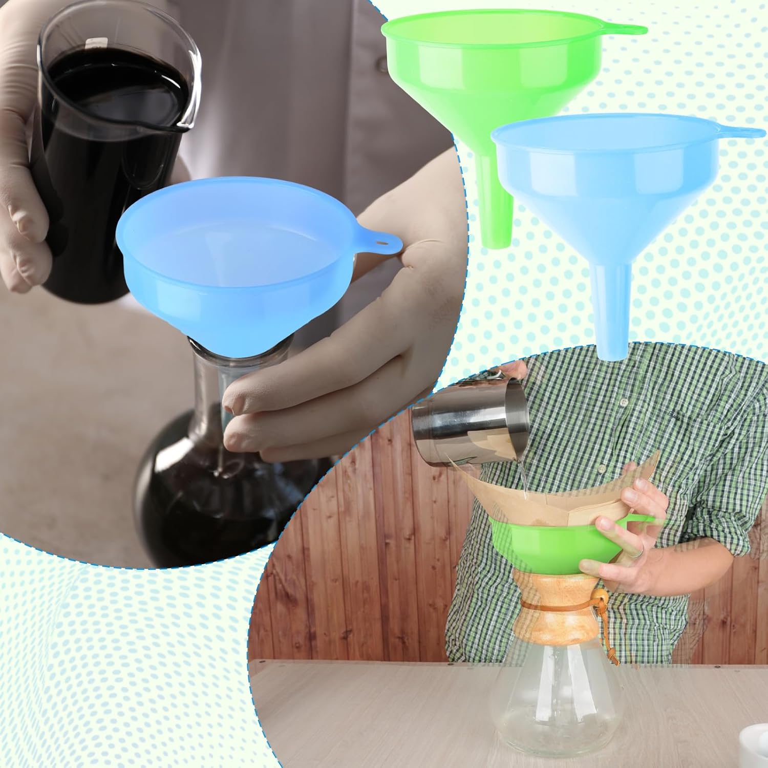 - 24 Pcs Funnel Set with 3 Vibrant Colors: good for lab/school use, this color-coded system (e.g., blue for water, yellow for oil) enhances efficiency and safety during liquid/dry chemical separation tasks