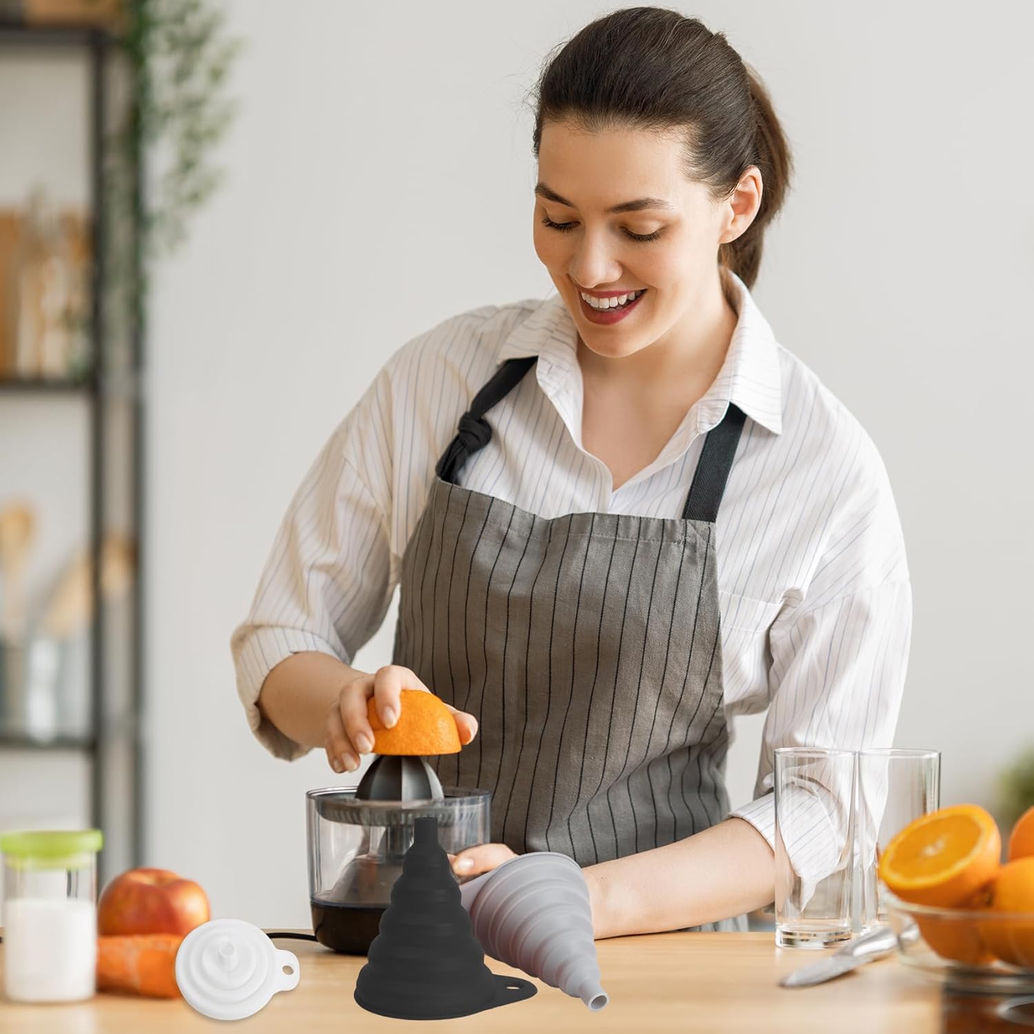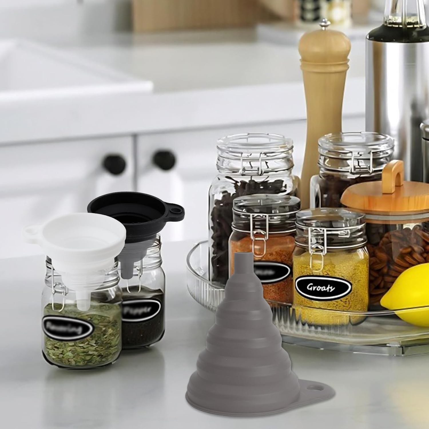 - Wide Applications: The funnels for kitchen use filling bottles is a handy tool that enhances kitchen efficiency and tidiness. Kitchen collapsible funnels can be used for pouring liquids, spices, flour, grains and more, and are suitable for almost any container