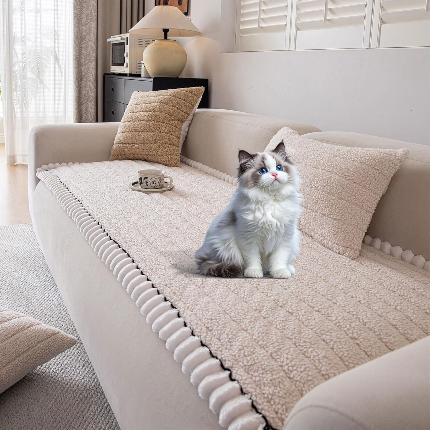 OTOB Couch Covers for Sofa Pet Friendly, Washable & Non Slip Fuzzy Dog Couch Cover Sofa Slipcovers Love Seat, Soft Plush Cozy Furniture Protector Cushion Mat, All Seasons (Beige, 27.6" x 59.1")