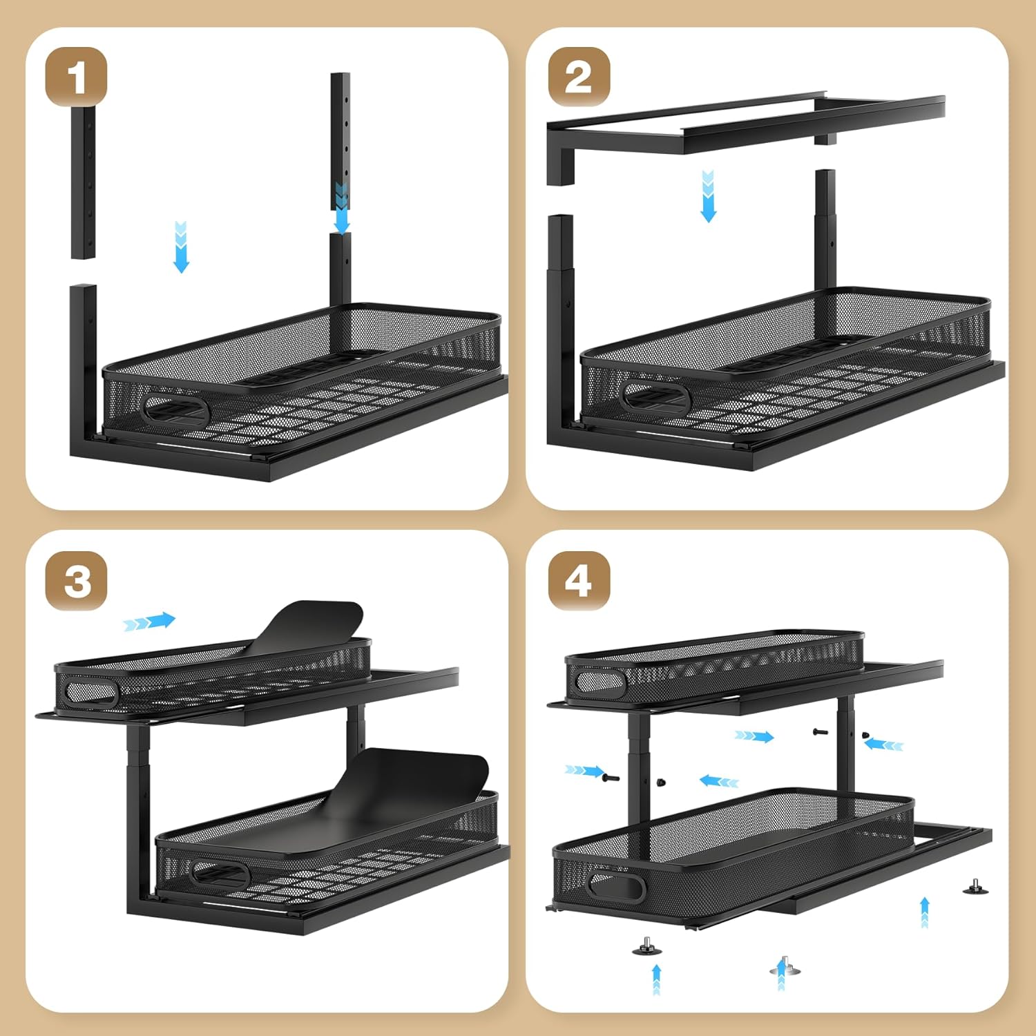 - 【Transform Your Space with Dual Pull-Out Design】 Discover the efficiency of our 2-Pack Under Sink Storage Organizer! Featuring an innovative dual pull-out design, both tiers glide open for quick and easy access to your essentials. Whether you’re organizing cleaning supplies or personal care items, the 2-Tier Slide Out Drawer helps maintain a neat and tidy home, making your daily routine more manageable.