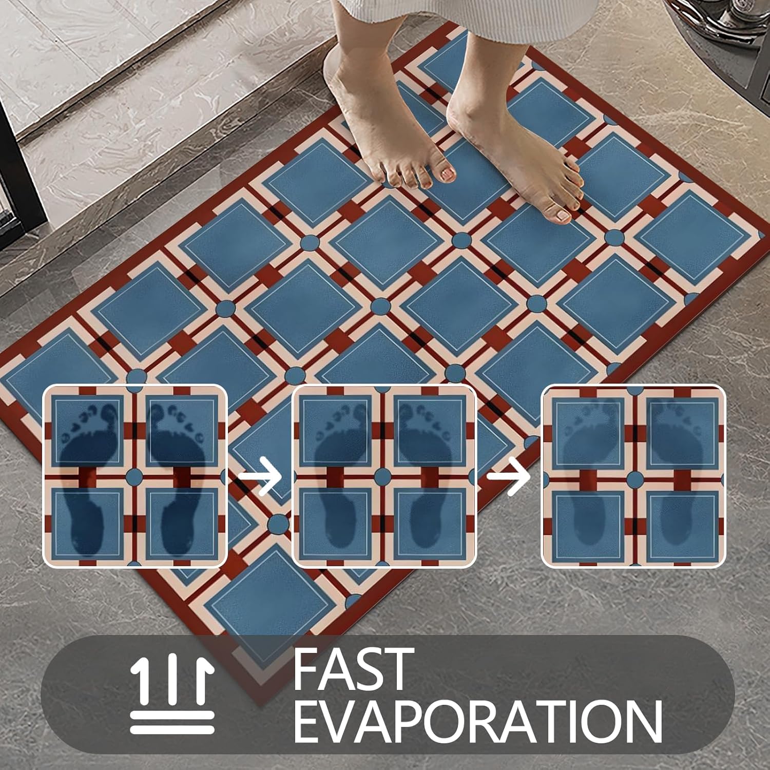 - 【Absorbent & Quick-Dry】Crafted with diatomaceous earth, this mat can absorb up to 1.9 gallons of water per square yard, making it perfect for high-moisture areas like bathrooms. Use it as an entrance mat to protect your floors from water damage, dirt, and debris, ensuring a clean and dry living space